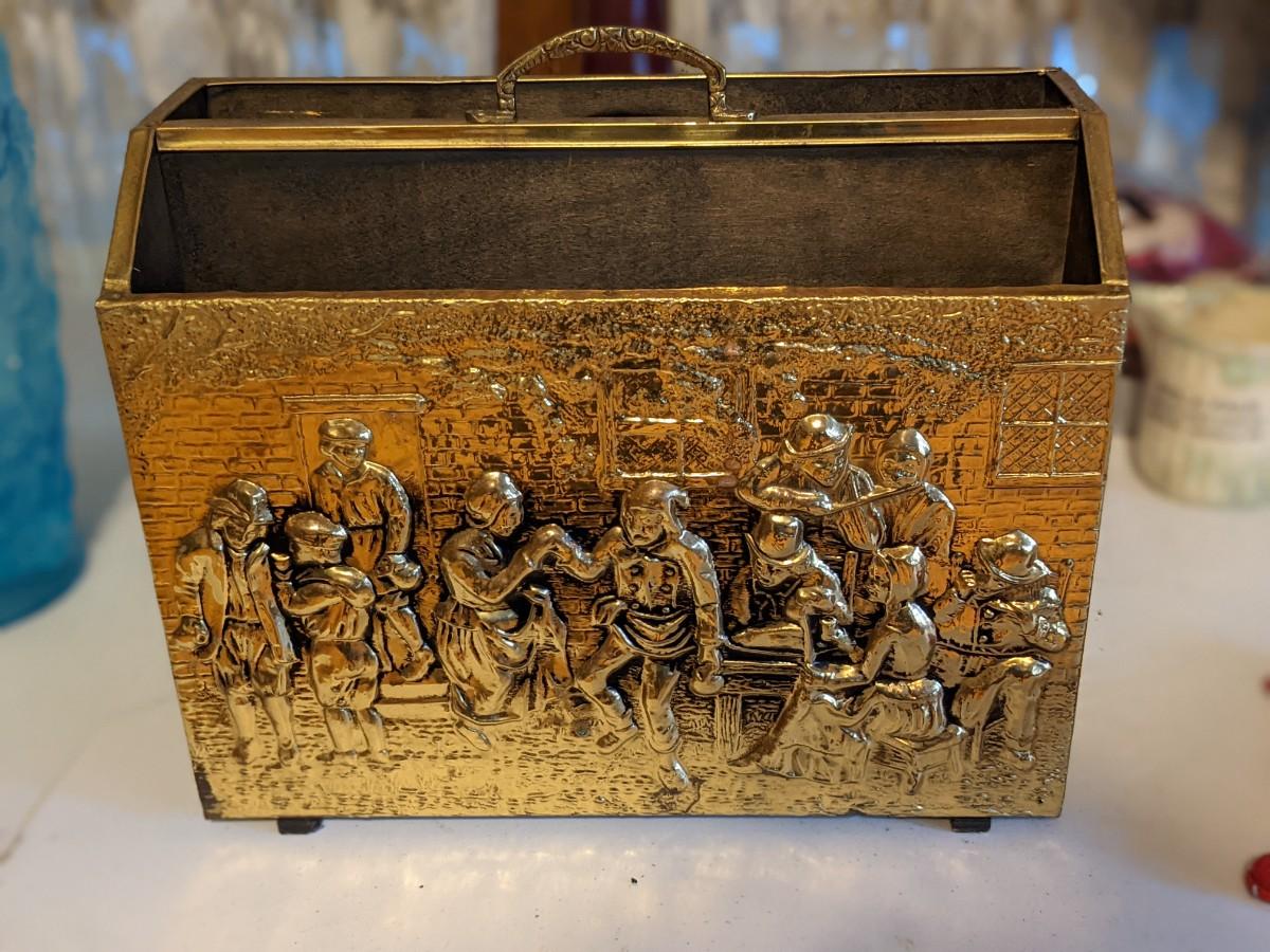 1930's Brass on Wood Magazine Rack-Exc Condition