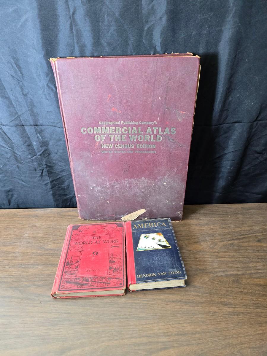 1930's Geographical publishing company commercial atlas of the world with other vintage workd / America books