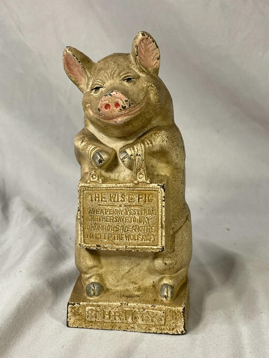 1930s Hubley J.M.R. Cast Iron Thrifty Pig Bank