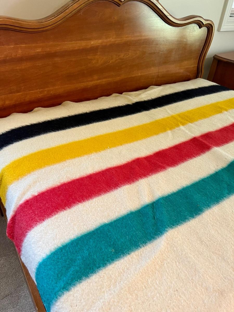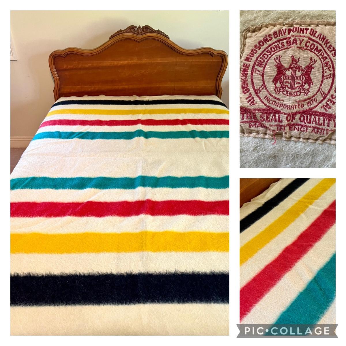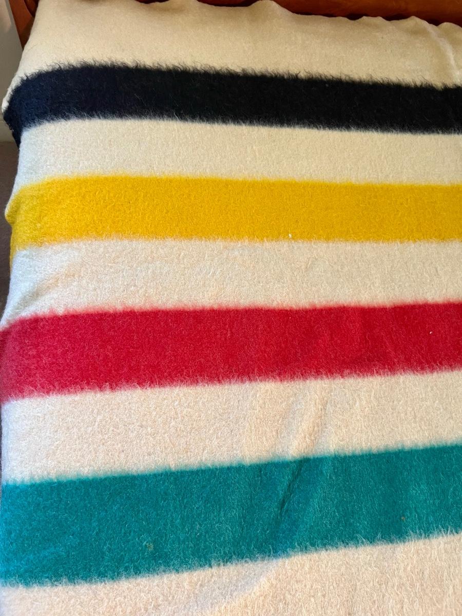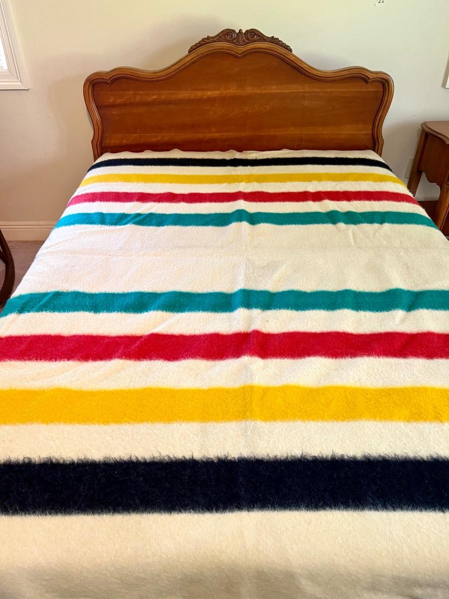 1930s Hudson Bay Company 4 Point wool Blanket Stripe Blanket Queen Size.