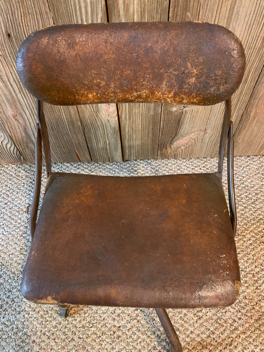 1930s Industrial swivel task / desk chair manufactured by Do/ More, Art Deco, decent condition, steel base. Retains original "oil cloth" leather-like seat and back as well as original label.