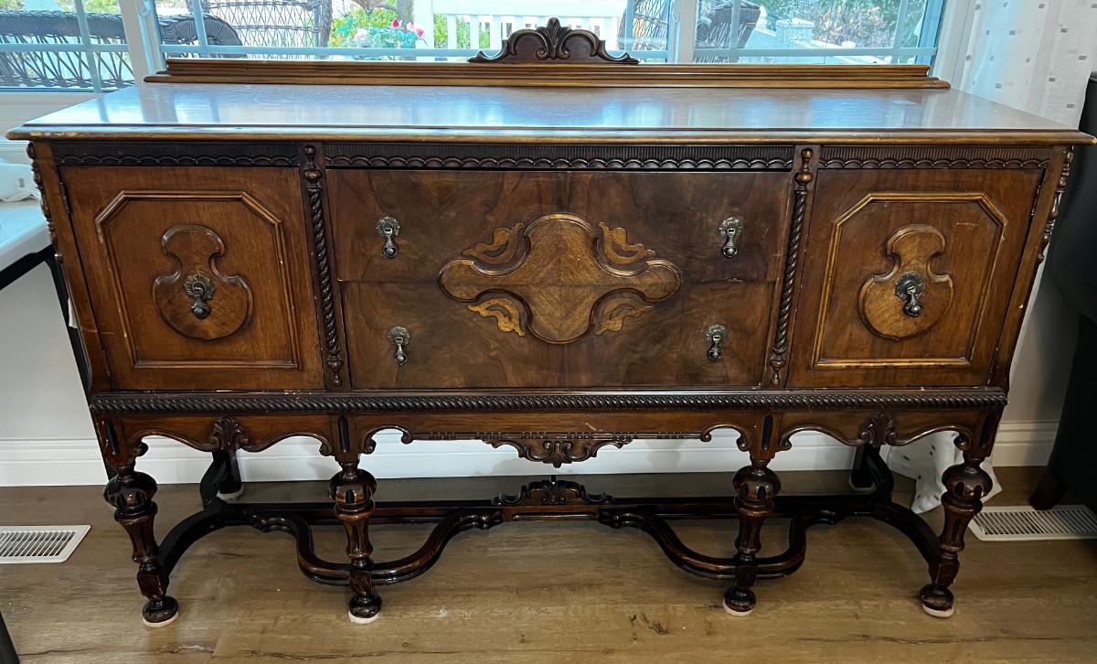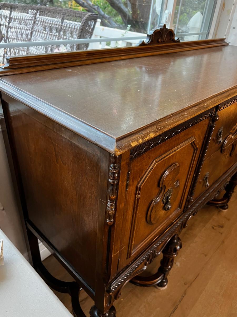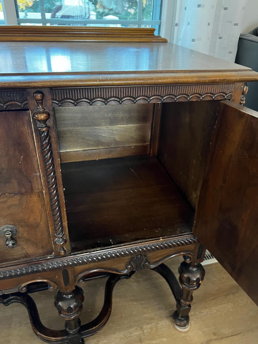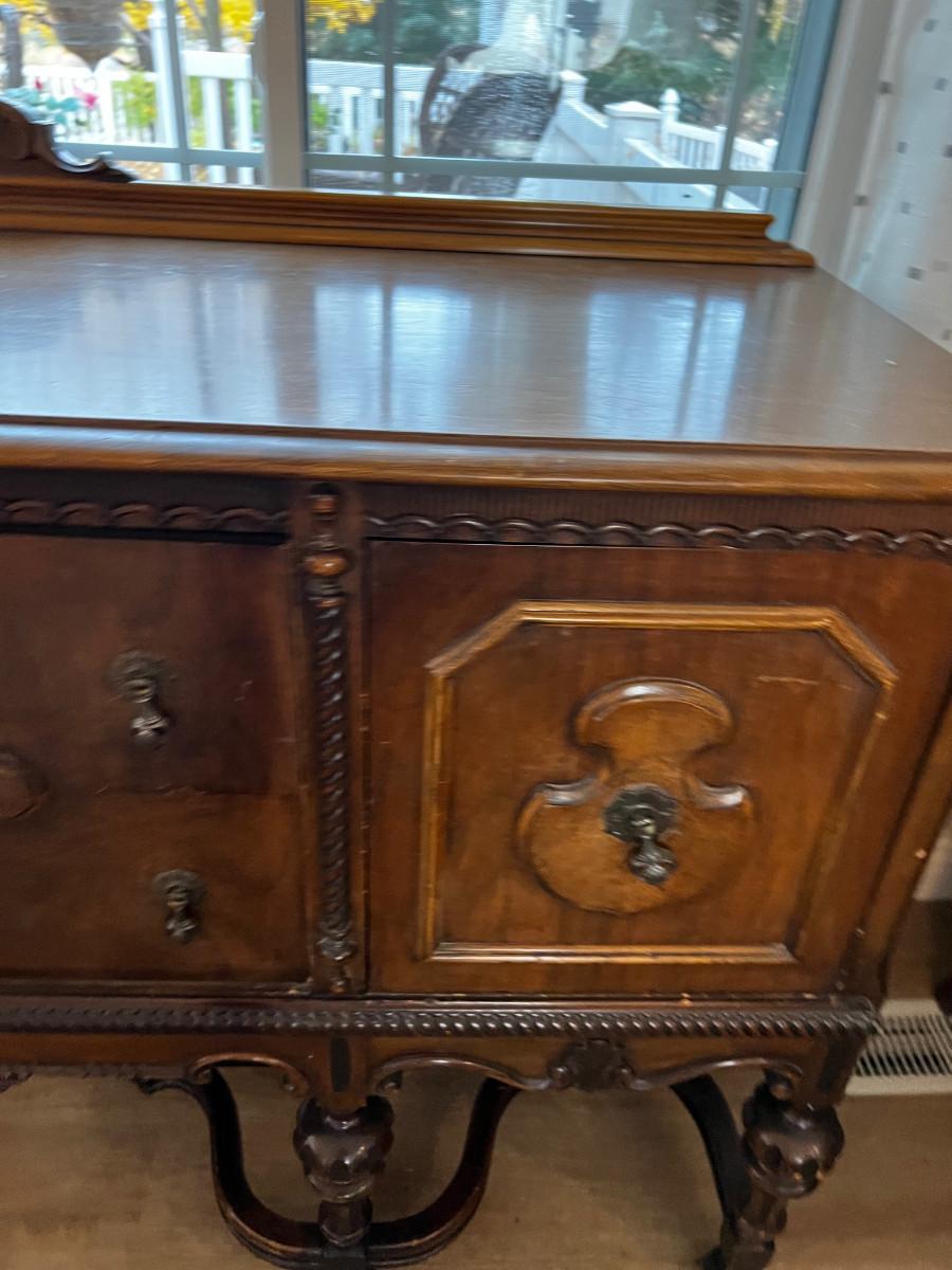 Used. Nice Good Condition with original Finish. Measures 66" Long x 21" Deep x 31" Tall. We saw one at the antique show for $495 last week. Has a silverware Drawer.