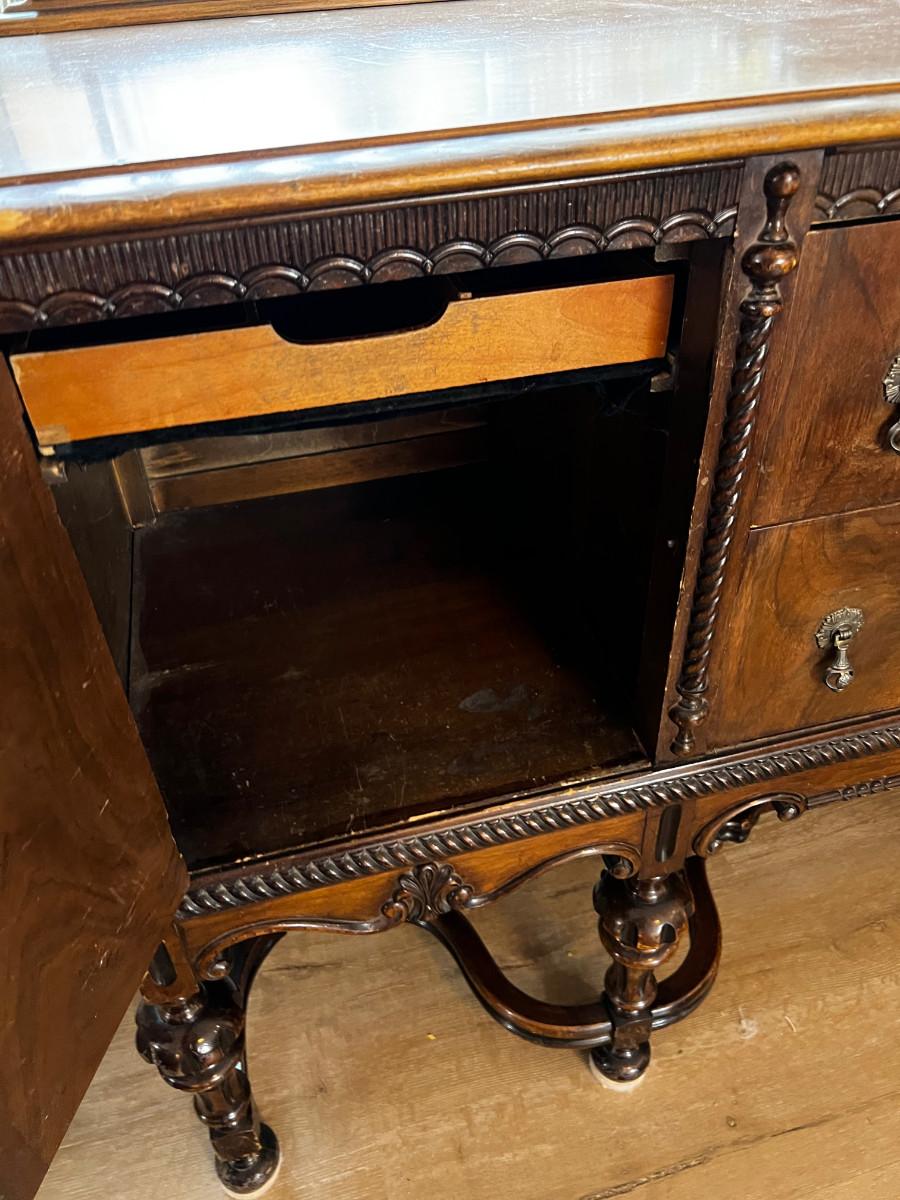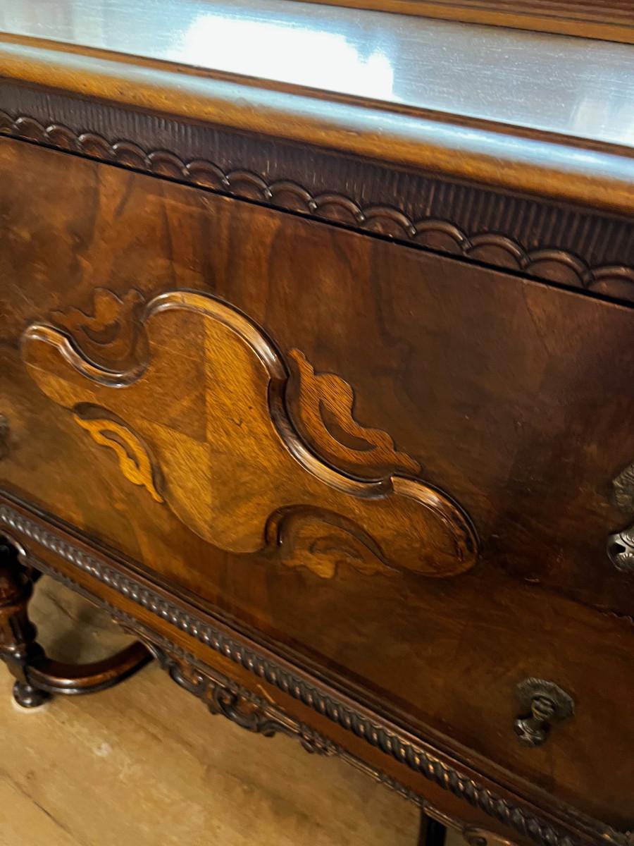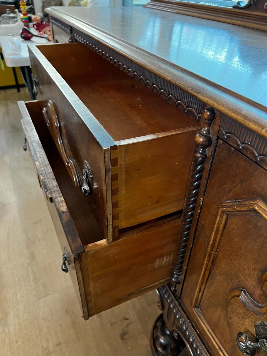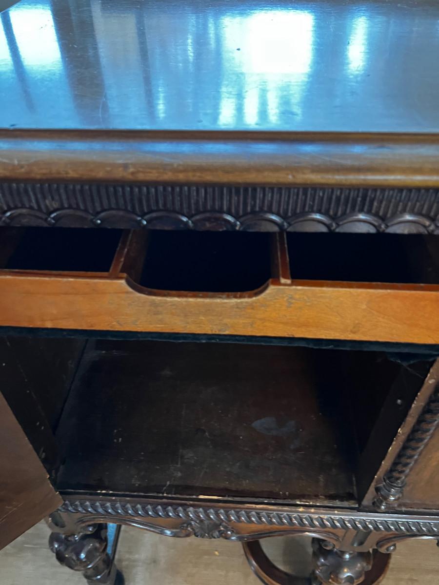 Used. Nice Good Condition with original Finish. Measures 66" Long x 21" Deep x 31" Tall. We saw one at the antique show for $495 last week. Has a silverware Drawer.