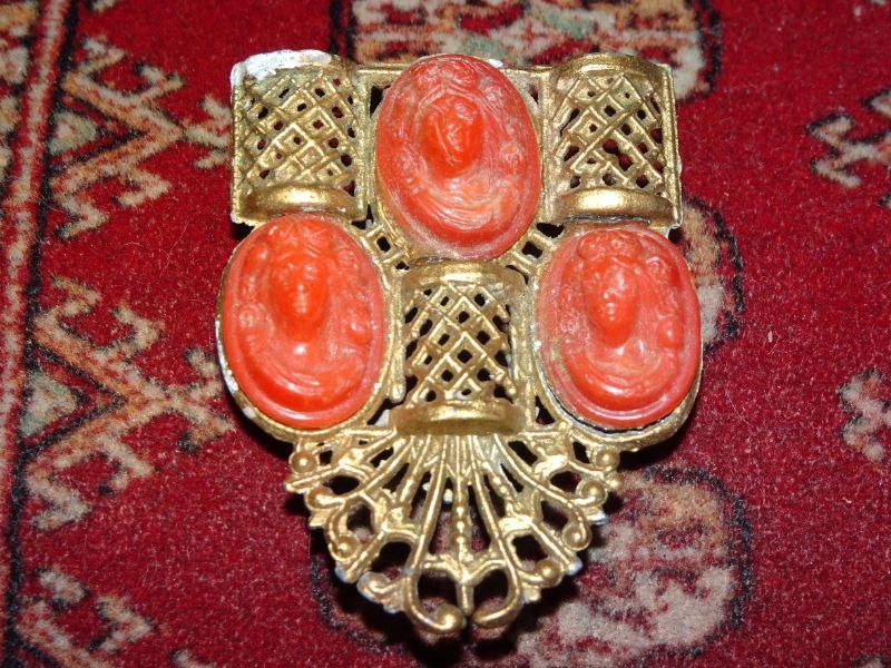 1930's Jewelry Dress Clip, Cameo's, jewelry Metal, Florentine, Ornate antique collectible unique style design