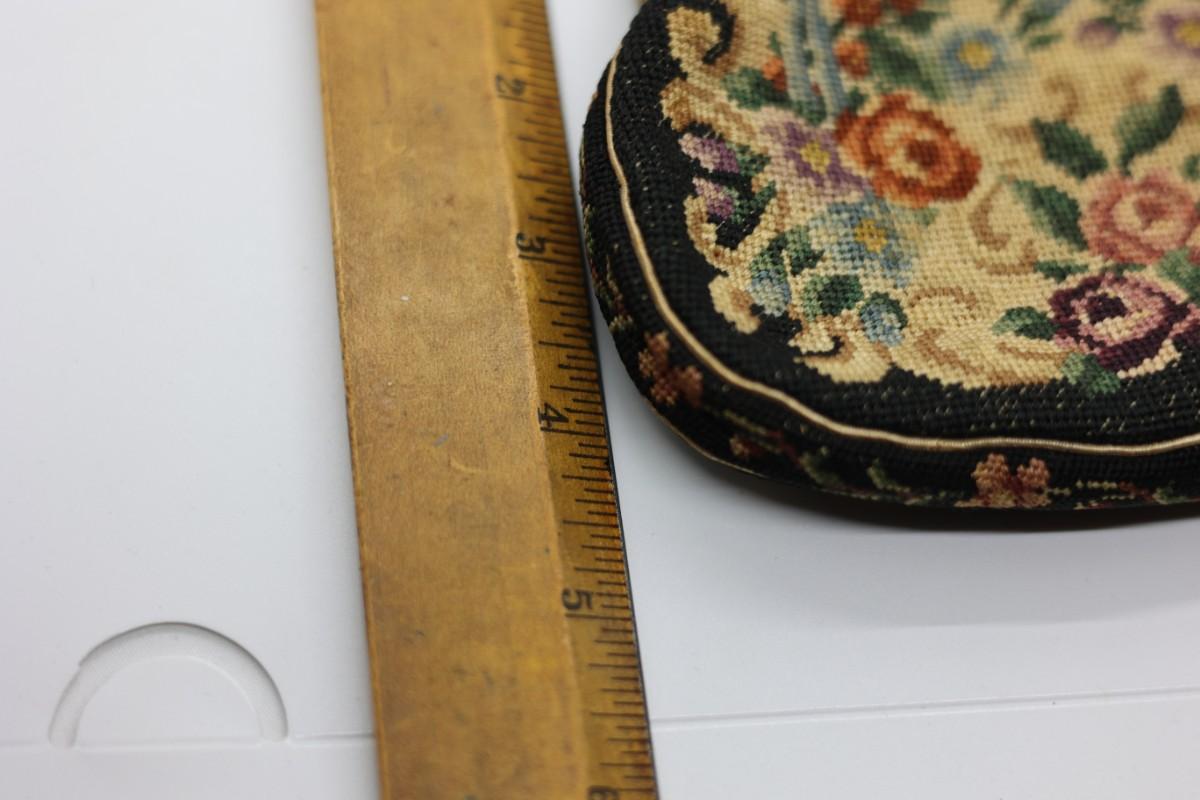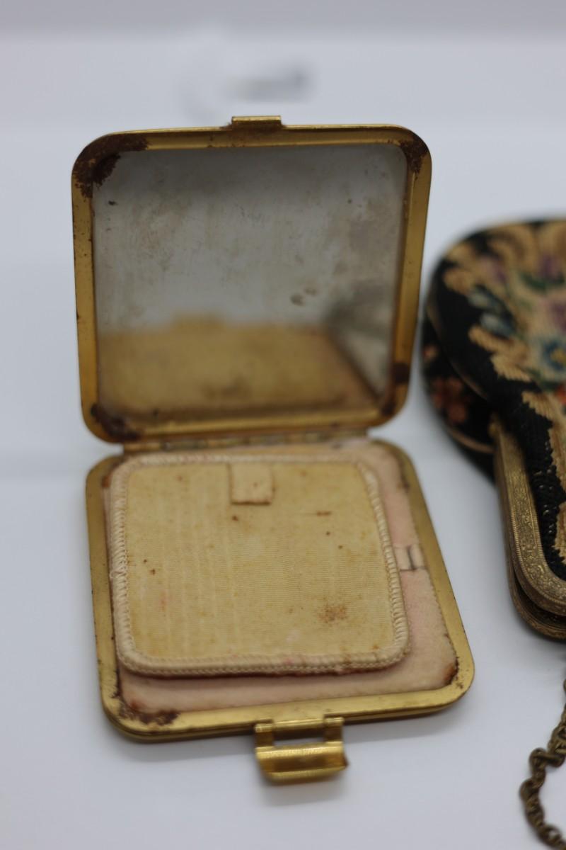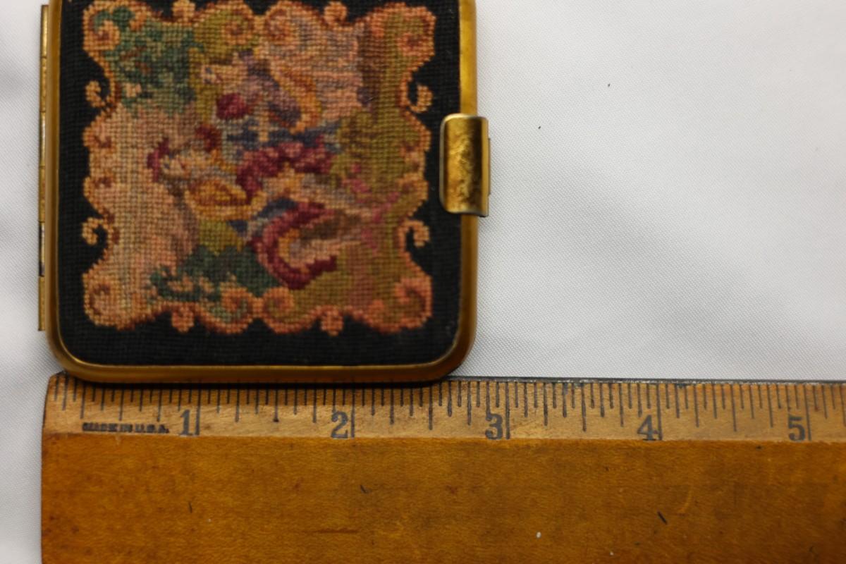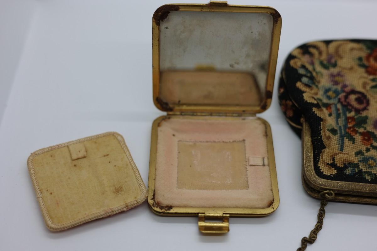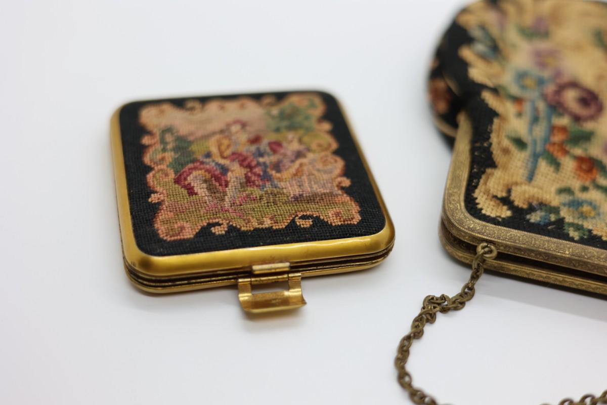 1930s Petit Point Floral Design Handbag & Figural Scenic Compact