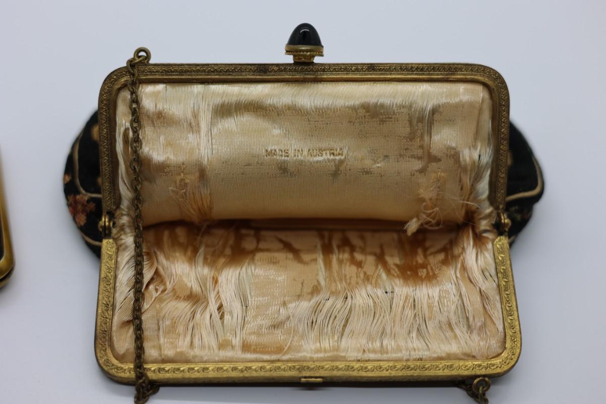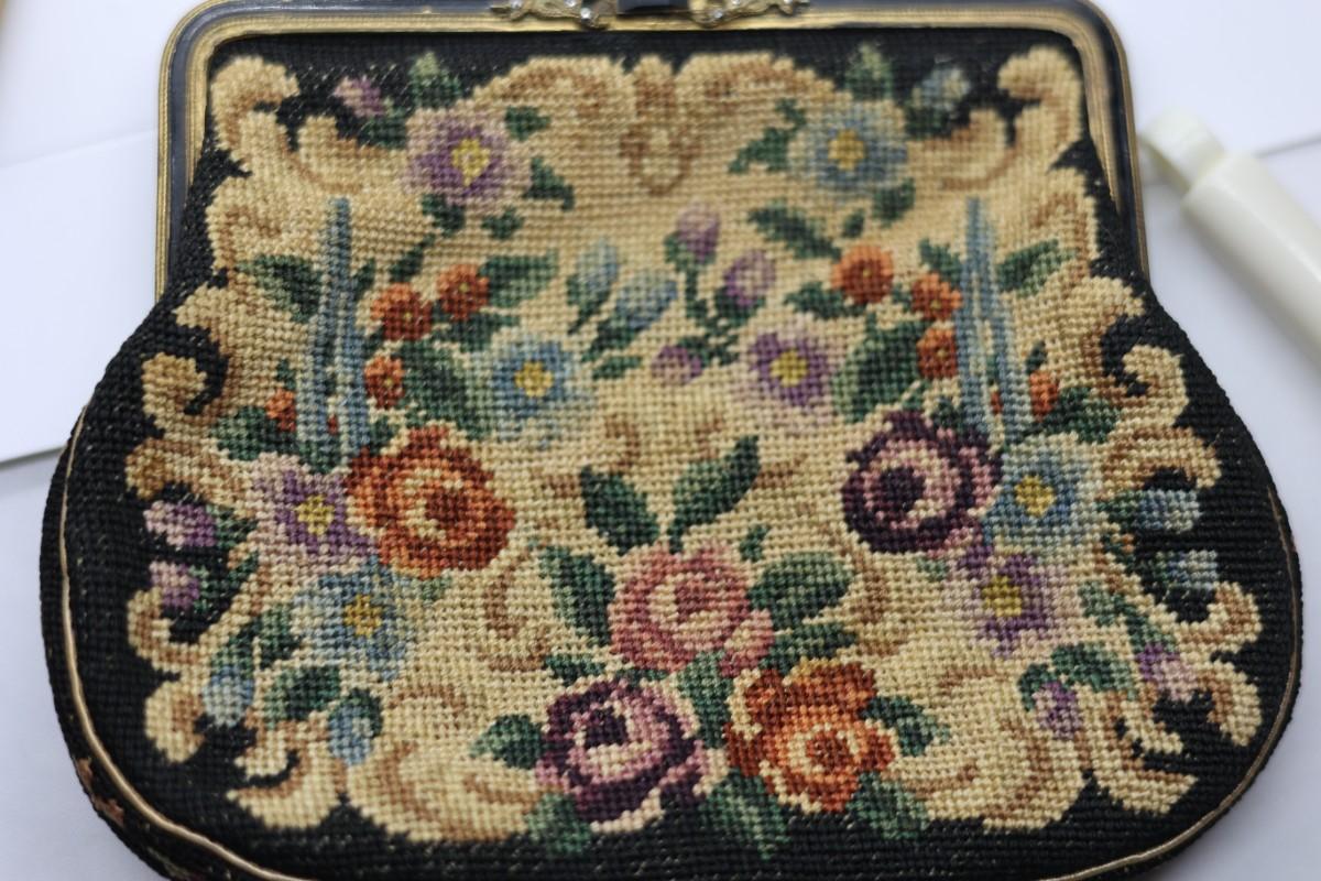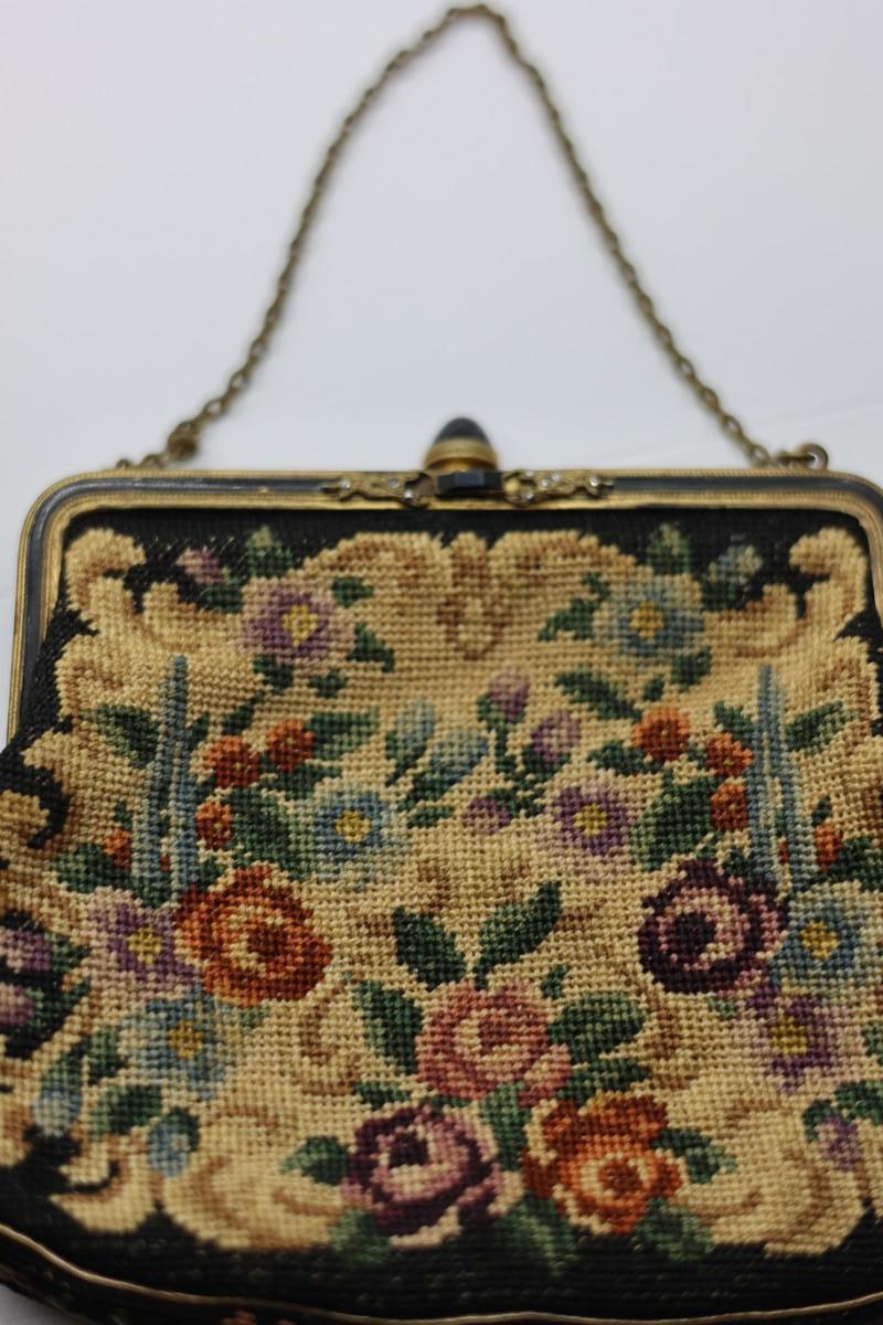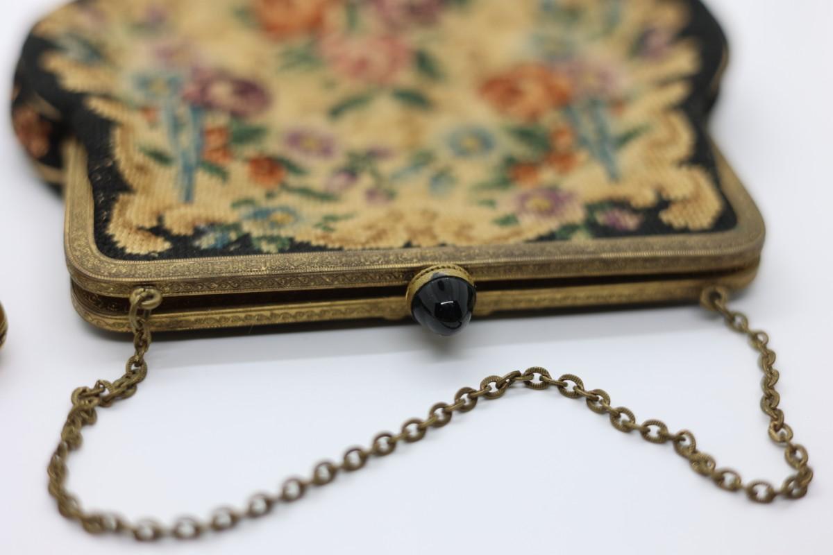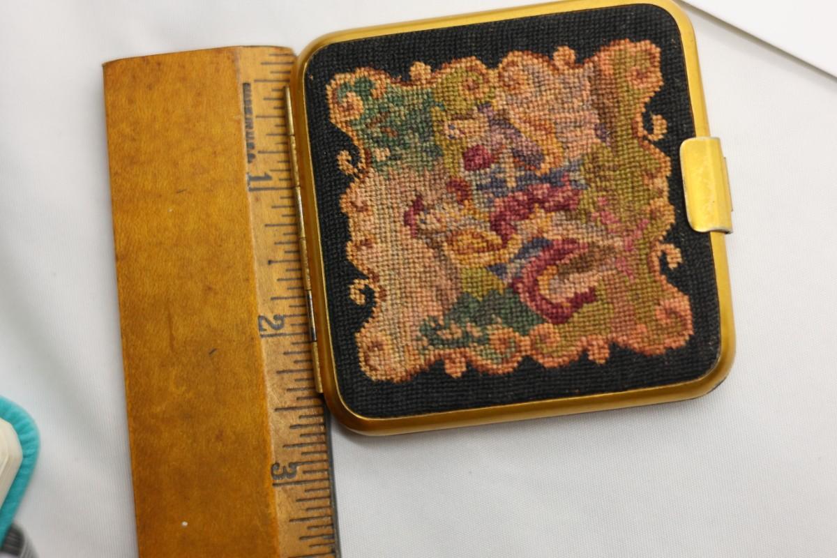 1930s Petit Point Floral Design Handbag & Figural Scenic Compact