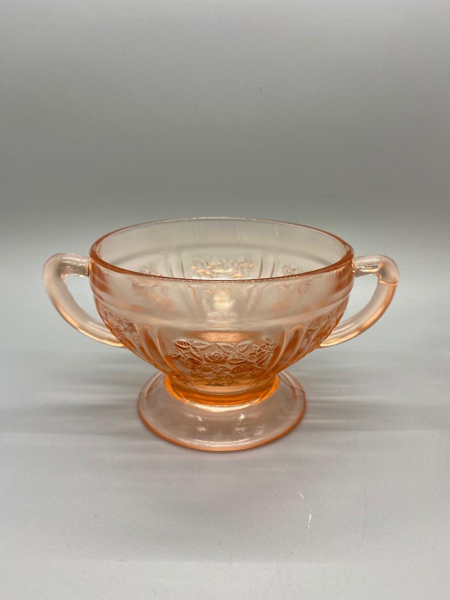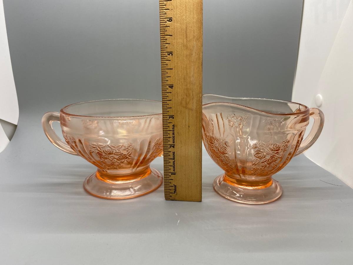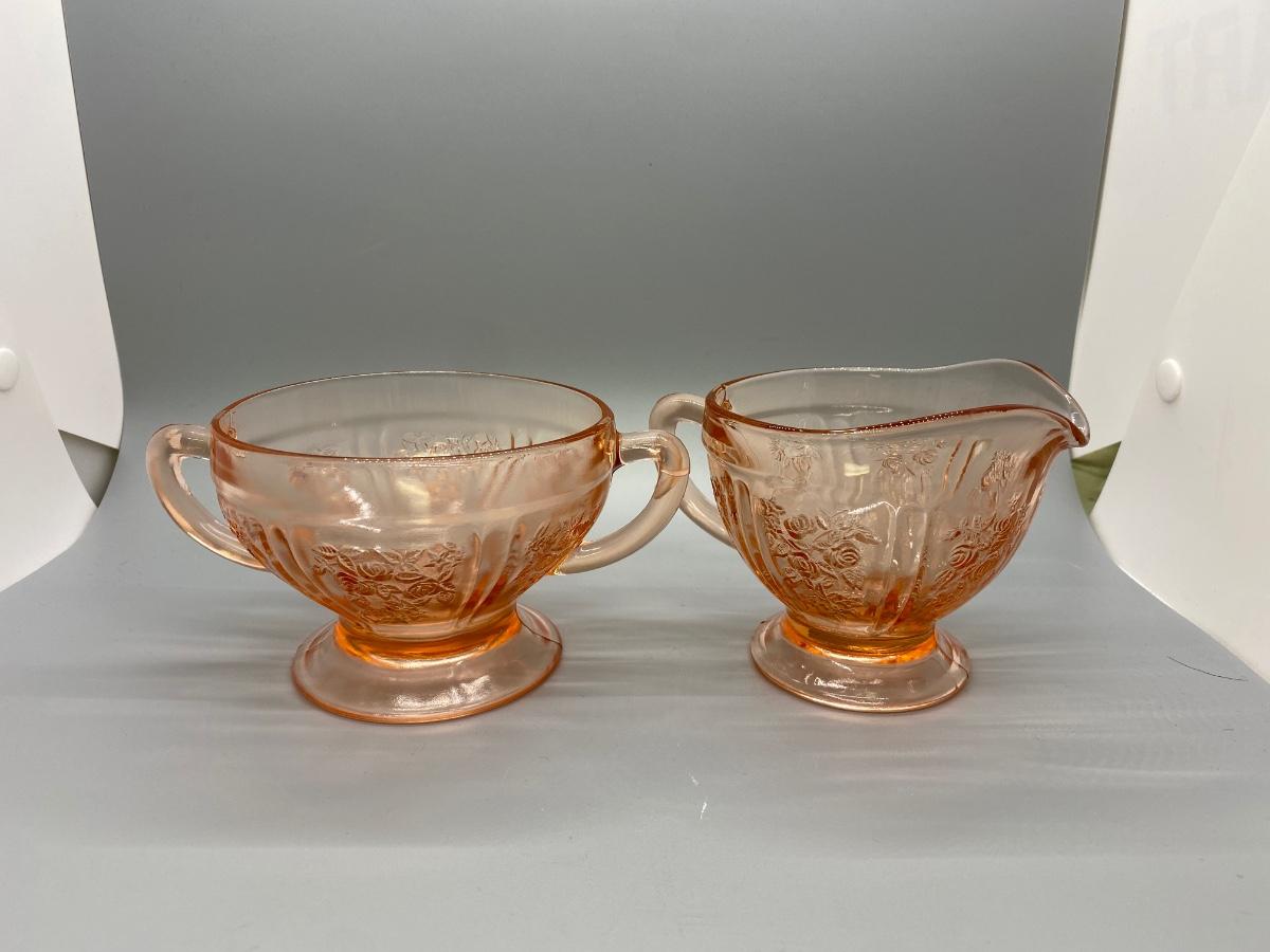 1930's Sharon Cabbage Rose Footed Cream & Sugar Set Pink Depression  Glass