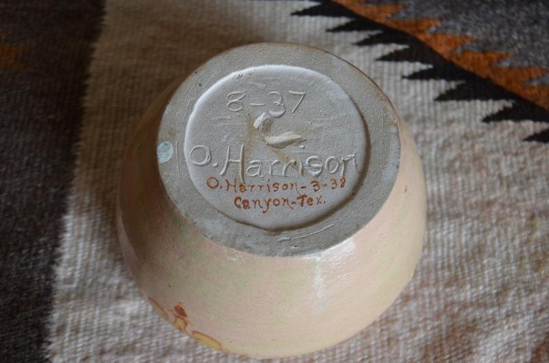 1930'S SIGNED HARRISON CLAY DECORATED BOWL 5" DIAMETER GREAT LOCAL DECORATED PC. CANYON TEXAS