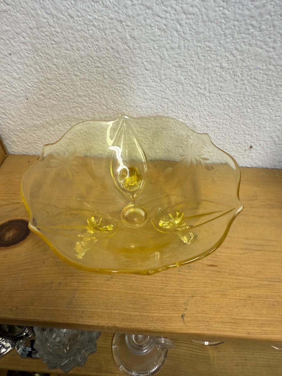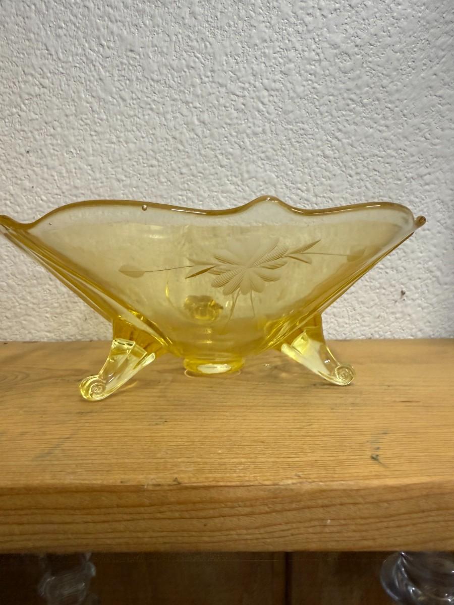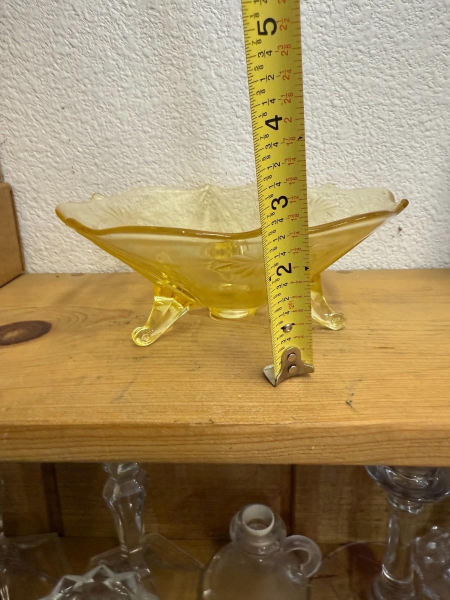 1930s Vintage Lancaster Yellow Depression Glass Three Footed Bow