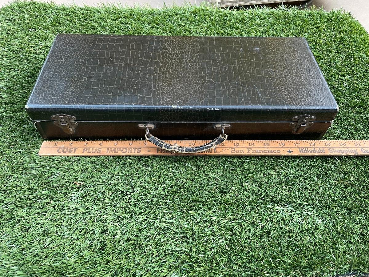 Stunning and very collectible and sought after vintage 1930's Mah Jongg set made by M.S.Cowen Co. These sets are highly desirable, they were considered to be one of the finest manufacturers of high quality Mah Jong sets, and this set shows the quality with gorgeous tiles in fantastic condition. The tiles are made of Catalin/Bakelite and are a soft butterscotch color (they test as Bakelite). The tiles are smooth and lovely, in fantastic condition...they are varied in color, a few are slightly darker. Includes dark brown faux crocodile leather (?) storage case and tile racks. The case is approximately 18.75” x 7.5” x 3.5”
