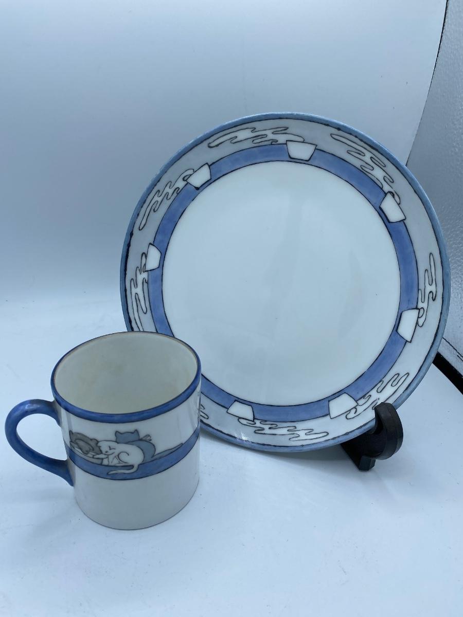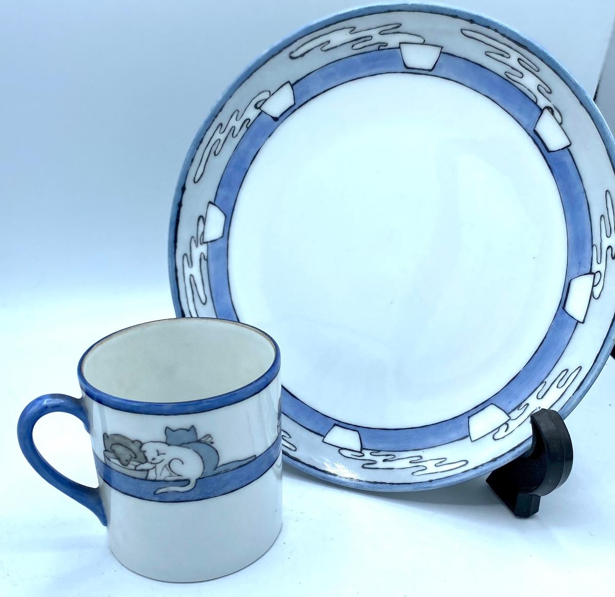 1932 Vintage Arts & Crafts Porcelain Child Baby Gift Mug &  Plate HP Kittens