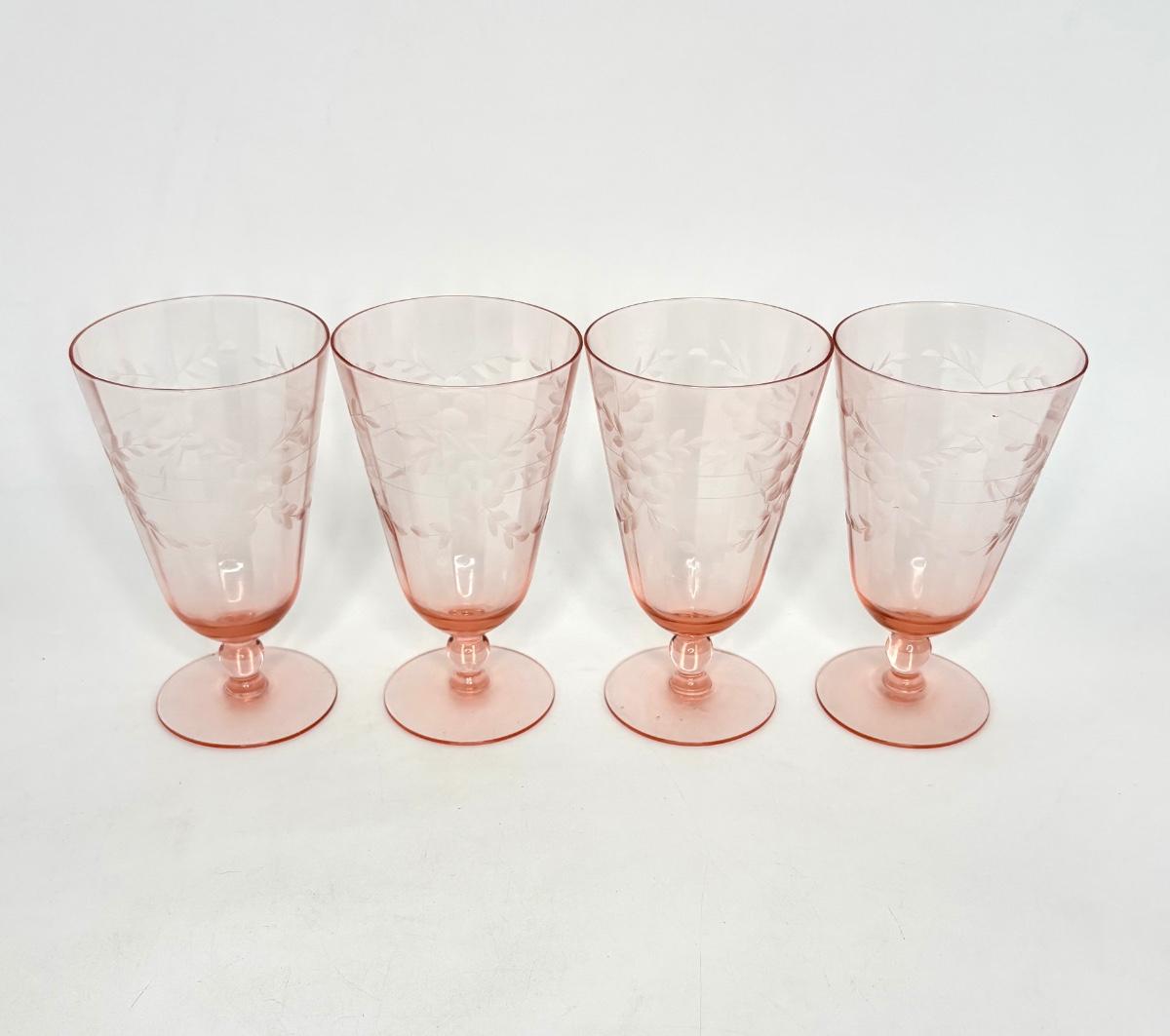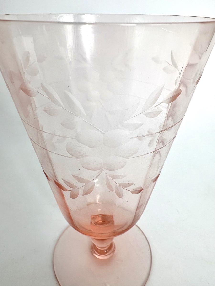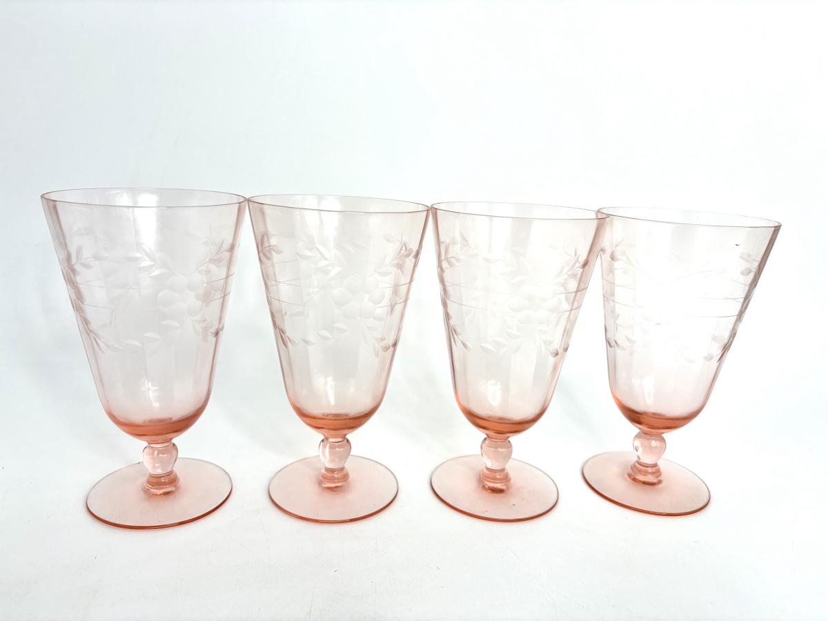Vintage Blanche Pink Ice Etched Floral Tea Glasses by Standard Glass - Set of 7