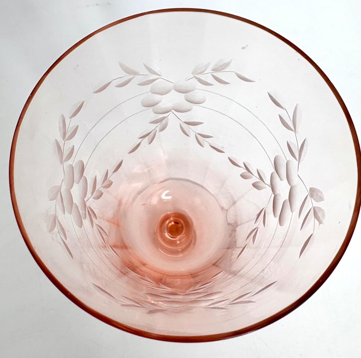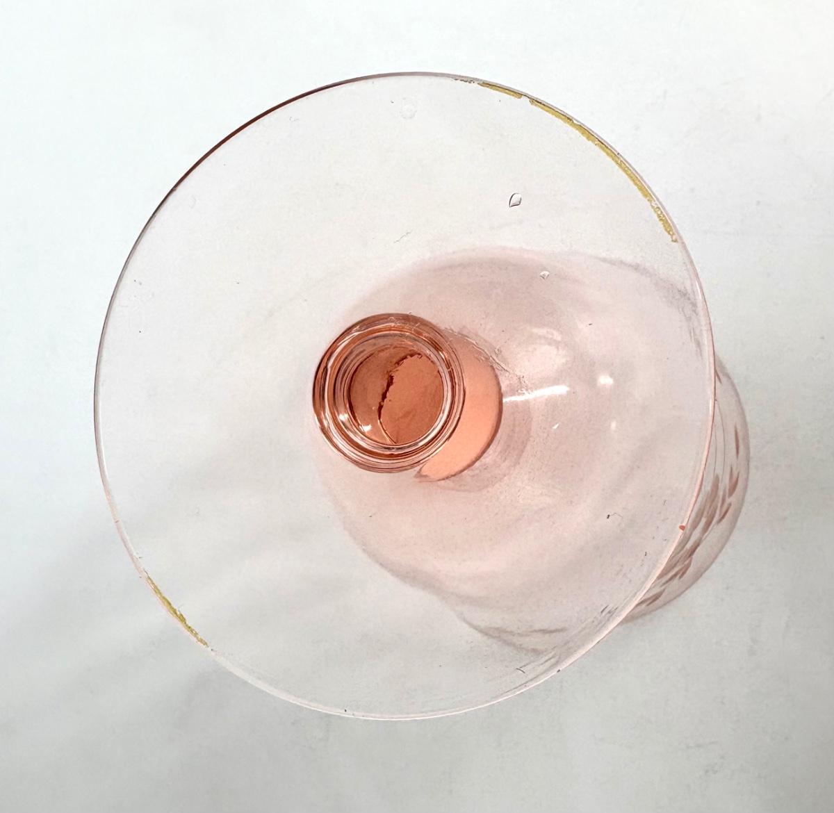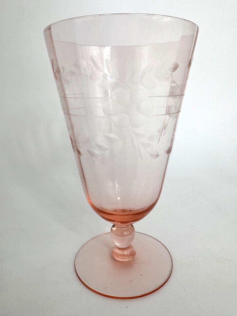 Vintage Blanche Pink Ice Etched Floral Tea Glasses by Standard Glass - Set of 7