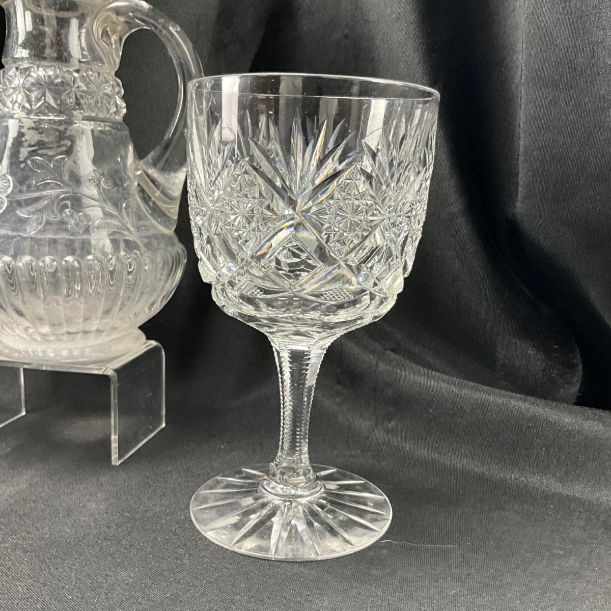 1933 Hawkes Holland Crystal Water Goblets & Antique Syrup Pitcher