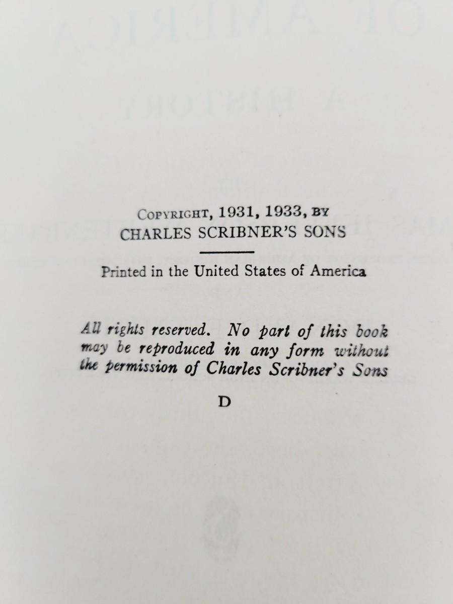 1933 THE UNITED STATES OF AMERICA - A HISTORY BY THOMAS JEFFERSON WERTENBAKER & DONALD E. SMITH