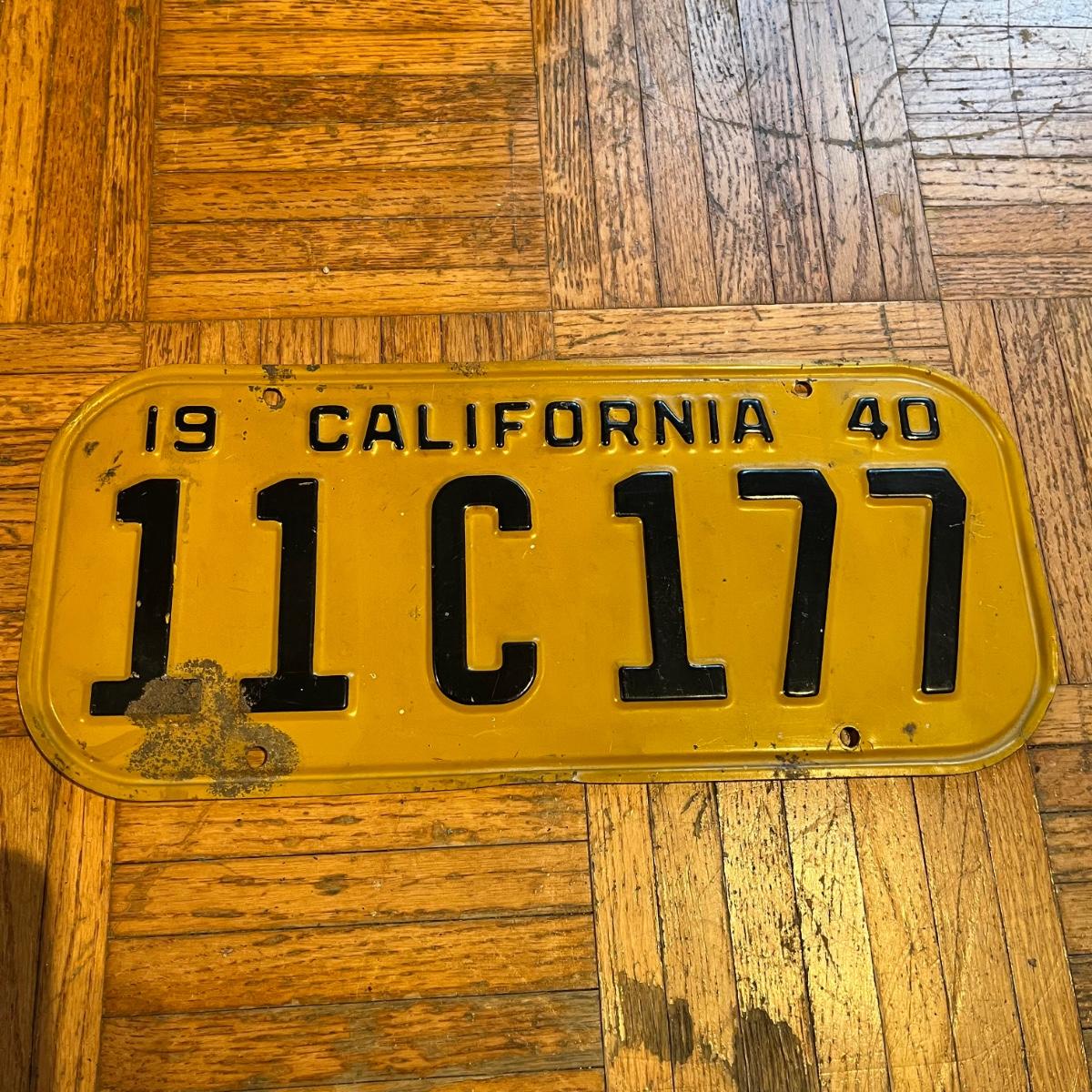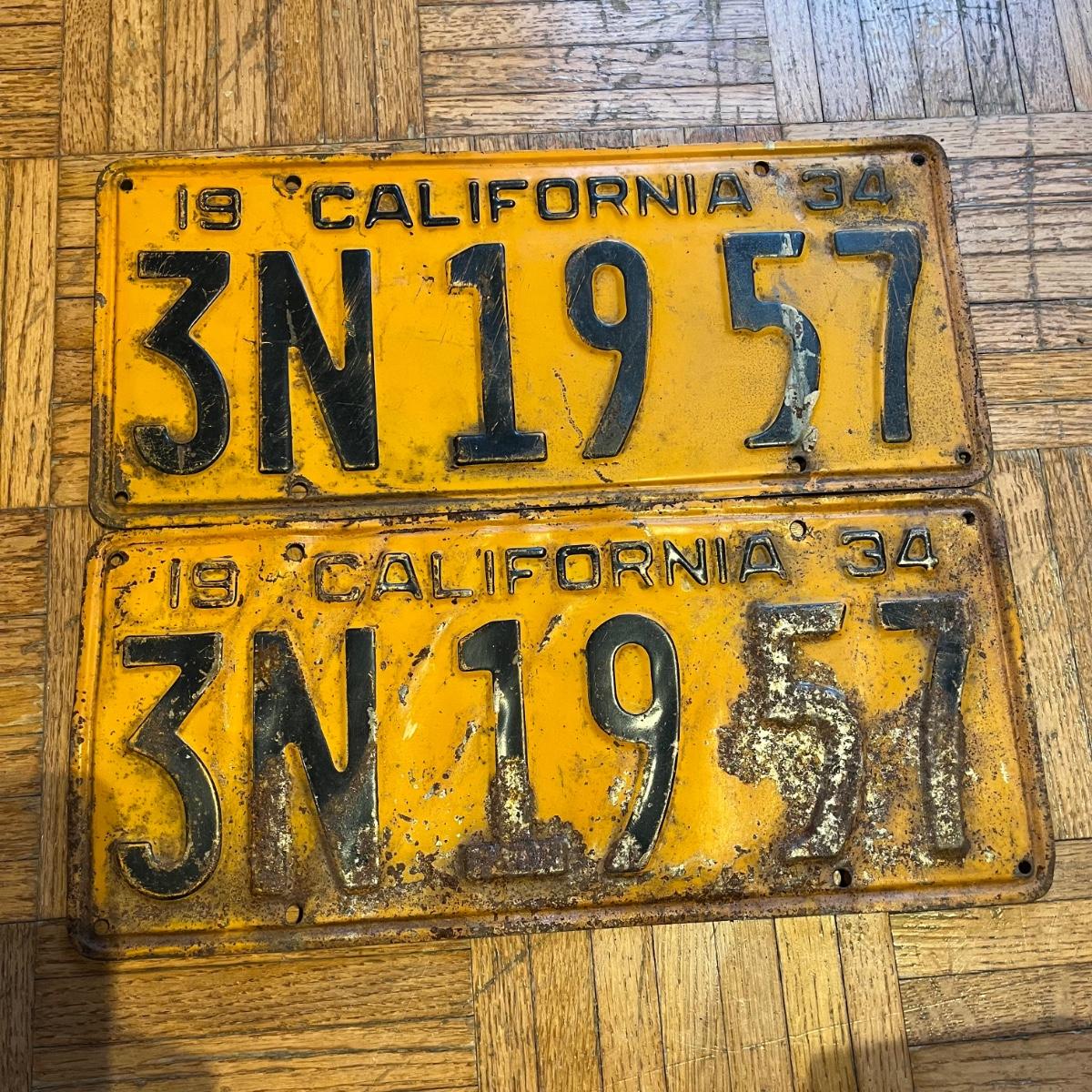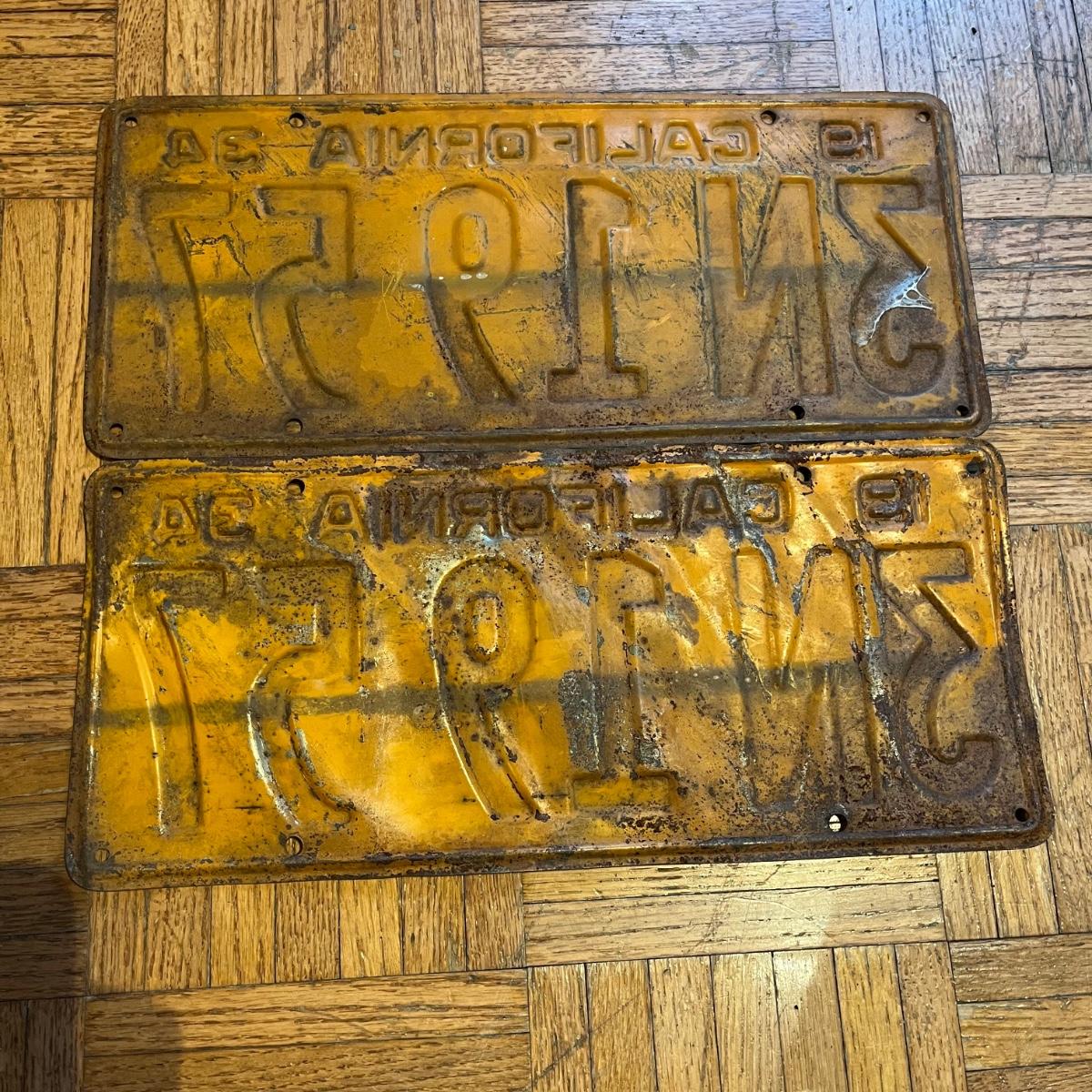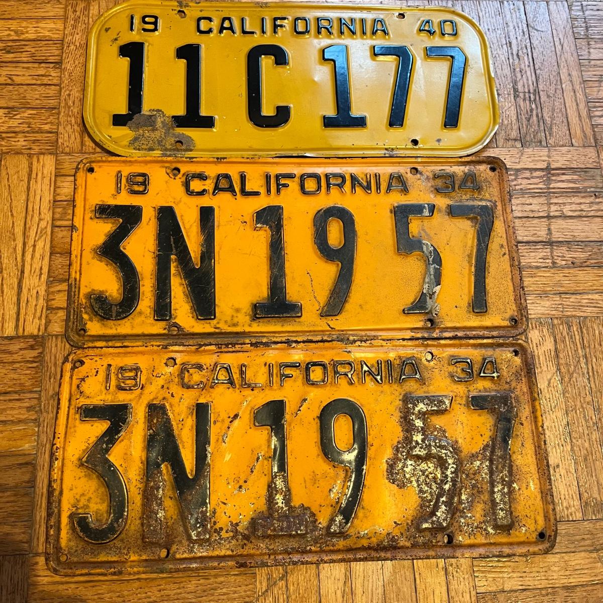 Lot includes a 1940 California license plate and a pair of 1934 California license plates.