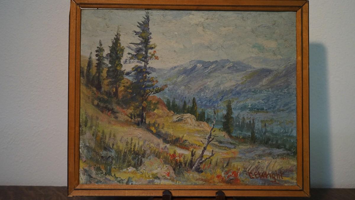 1934 OIL ON BOARD "GRAND LAKE COLORADO " SIGNED BY LG WRIGHT