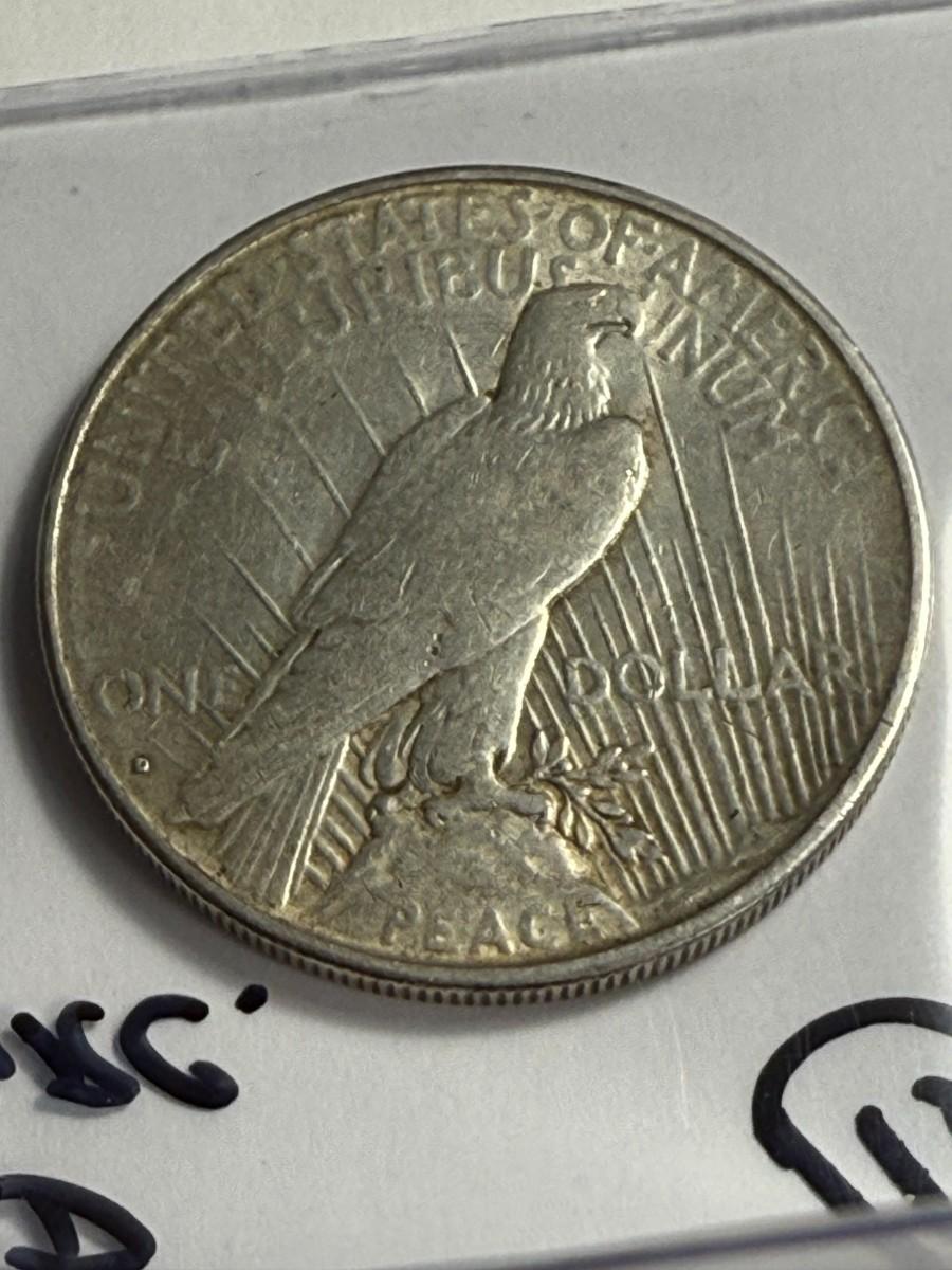 1934-D CIRCULATED CONDITION PEACE SILVER DOLLAR COIN #16 AS PICTURED. $5 DOMESTIC SHIPPING.