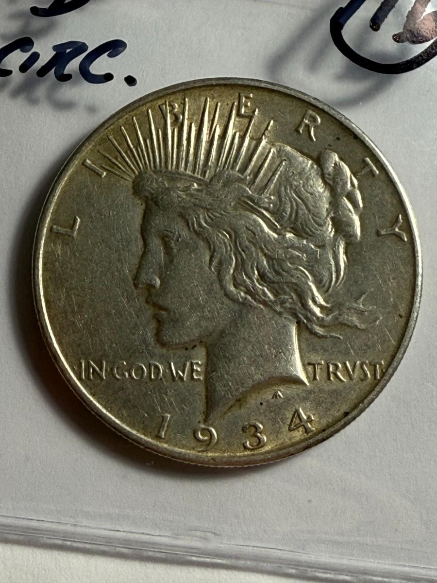 1934-D CIRCULATED CONDITION PEACE SILVER DOLLAR COIN #16 AS PICTURED. $5 DOMESTIC SHIPPING.