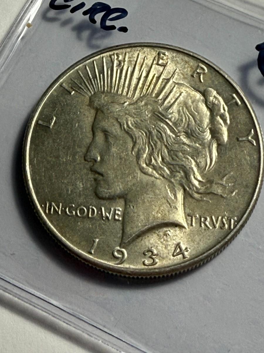 1934-P CIRCULATED CONDITION PEACE SILVER DOLLAR COIN #14 AS PICTURED. $5 DOMESTIC SHIPPING.