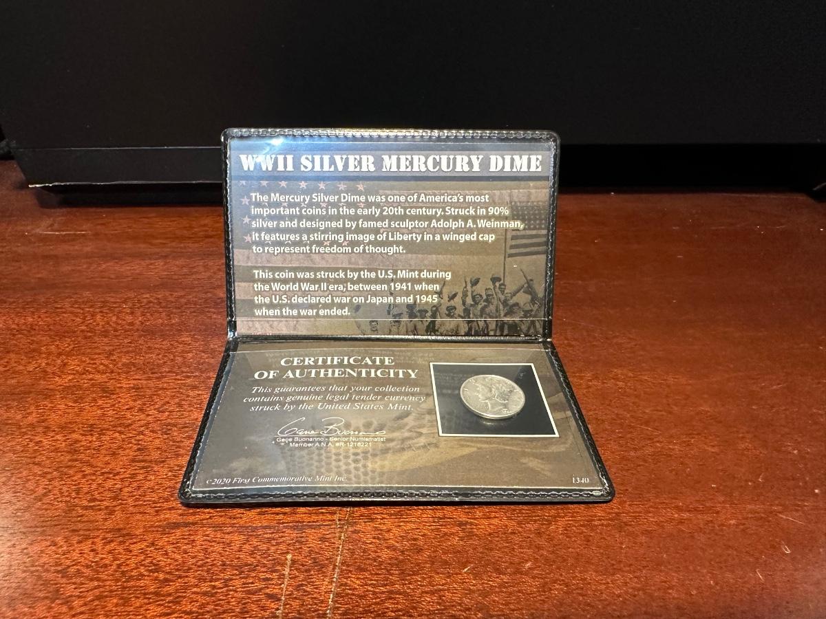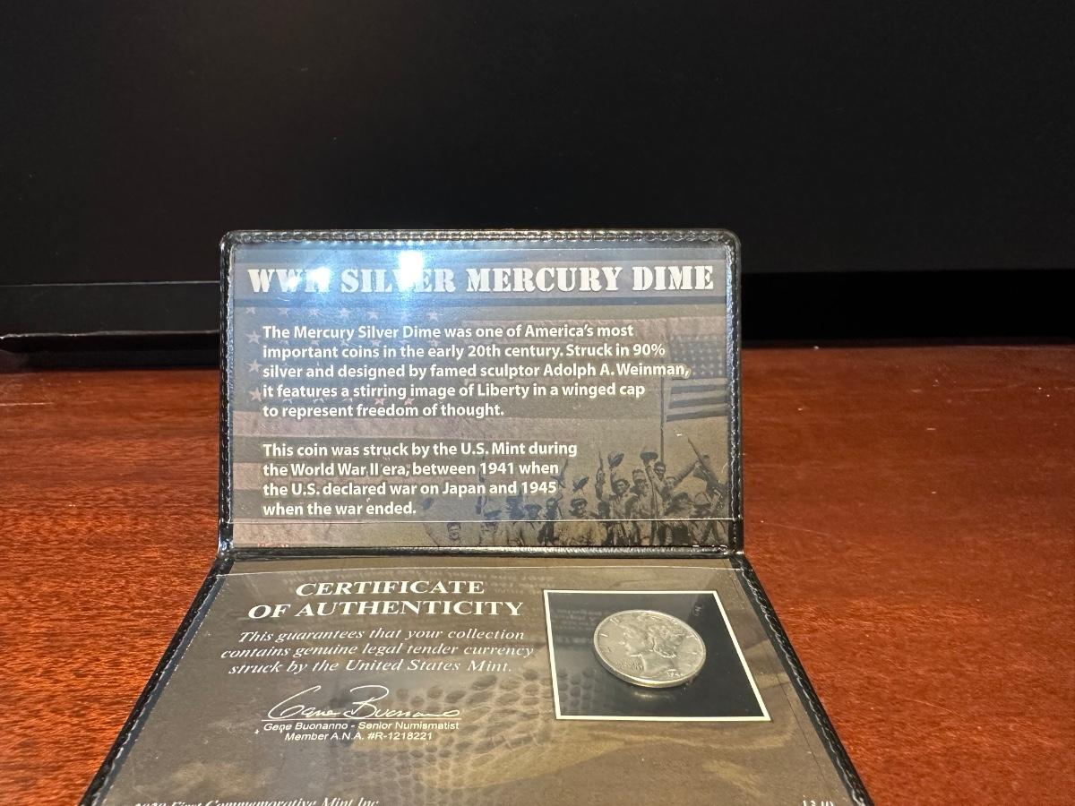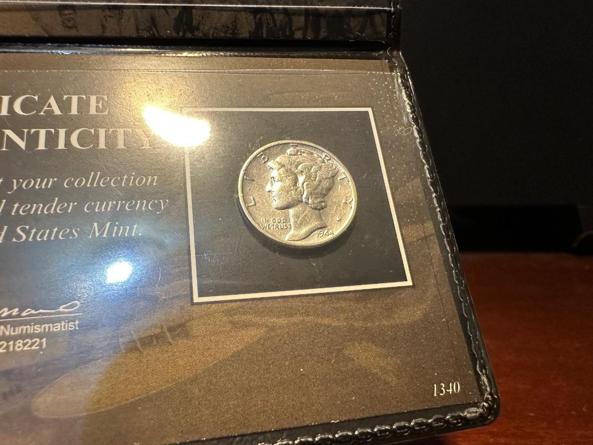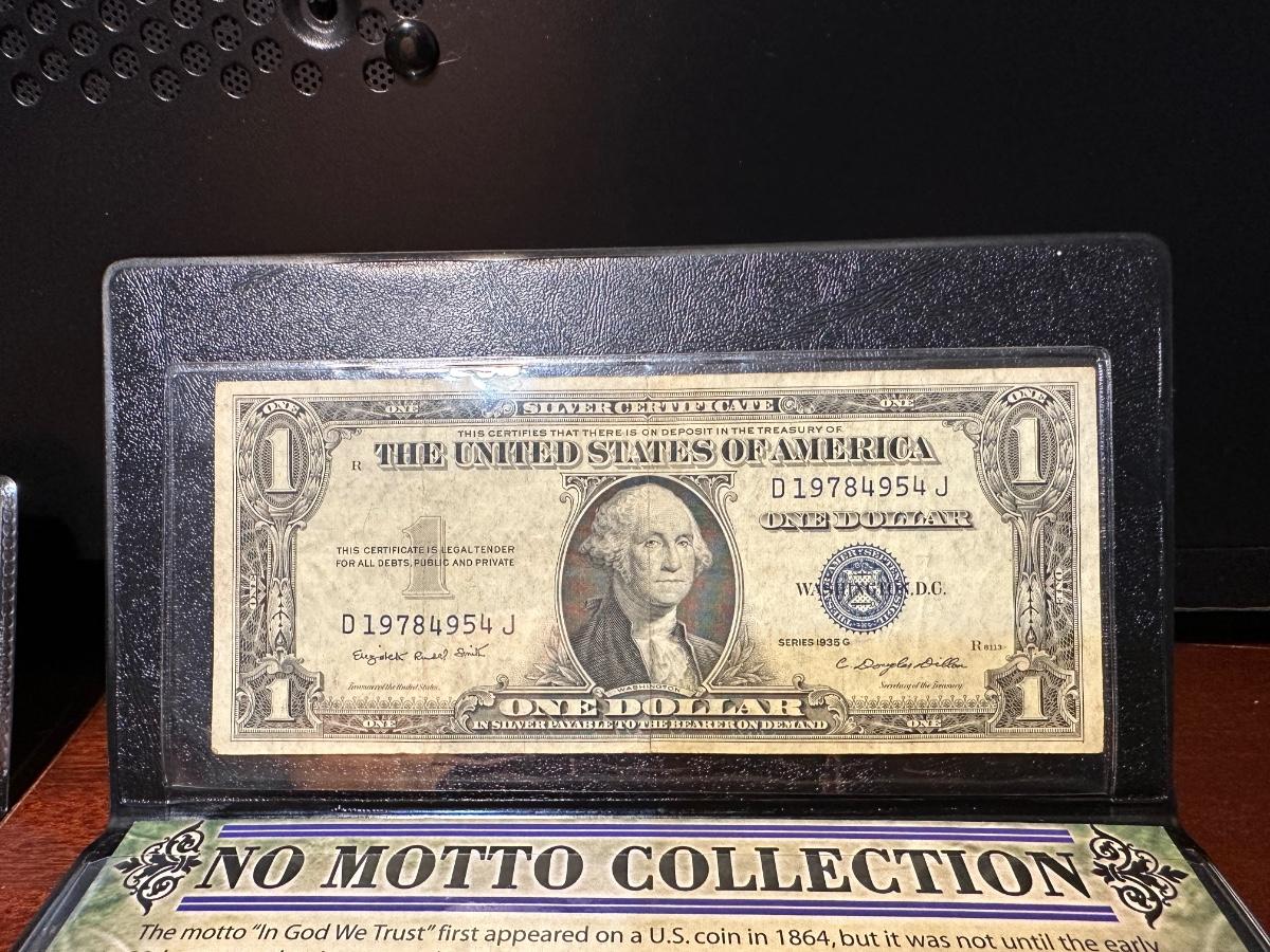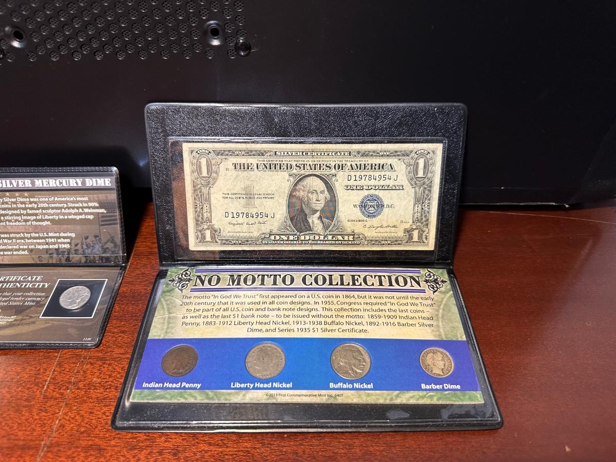1935 $1 BLUE SEAL, NO MOTTO COIN COLLECTION AND 1944 WWII SILVER MERCURY DIME