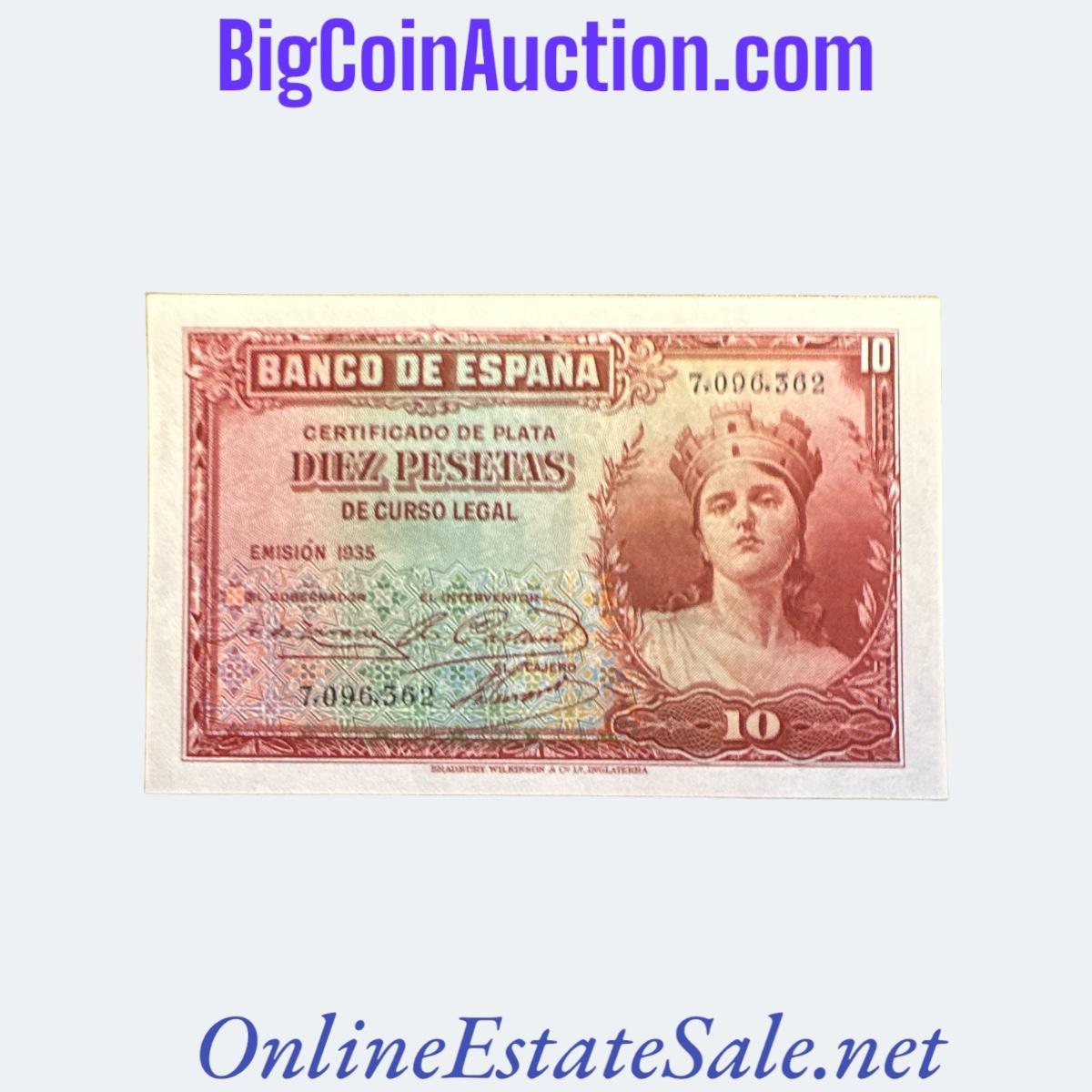 1935 (1936) SPAIN 10 PESETAS SILVER CERTIFICATE
