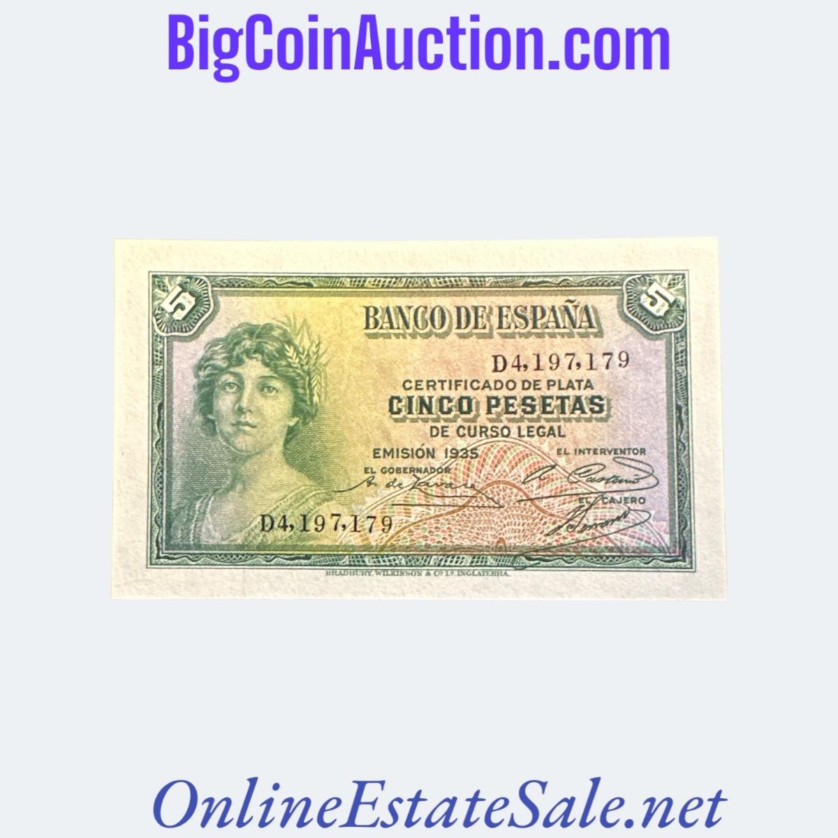 1935 (1936) SPAIN 5 PESETAS SILVER CERTIFICATE