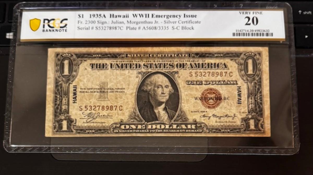 1935 A Hawaii WW II Emg.Issue Silver Cert.VF 20