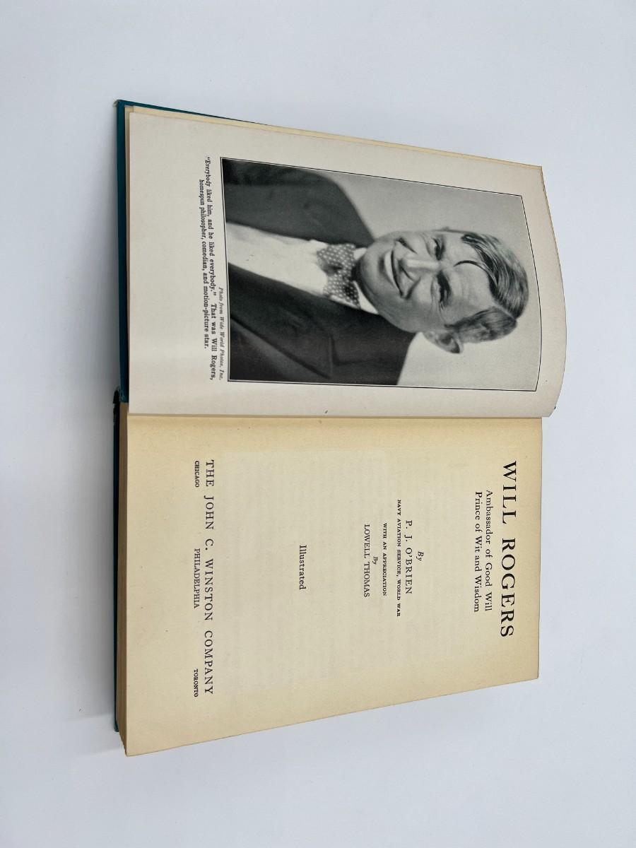 Will Rogers Ambassador of Good Will Prince of Wit and Wisdom by P.J. O'Brien. Book published by the John C. Winston Company in 1935. Condition as shown.