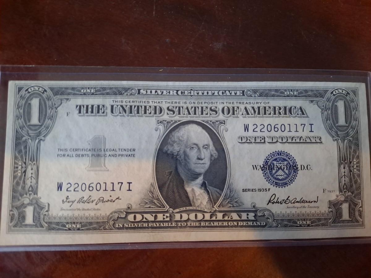1935 F Series $1 Bill Silver Certificate Blue Seal Serial # W22060127I Uncirc