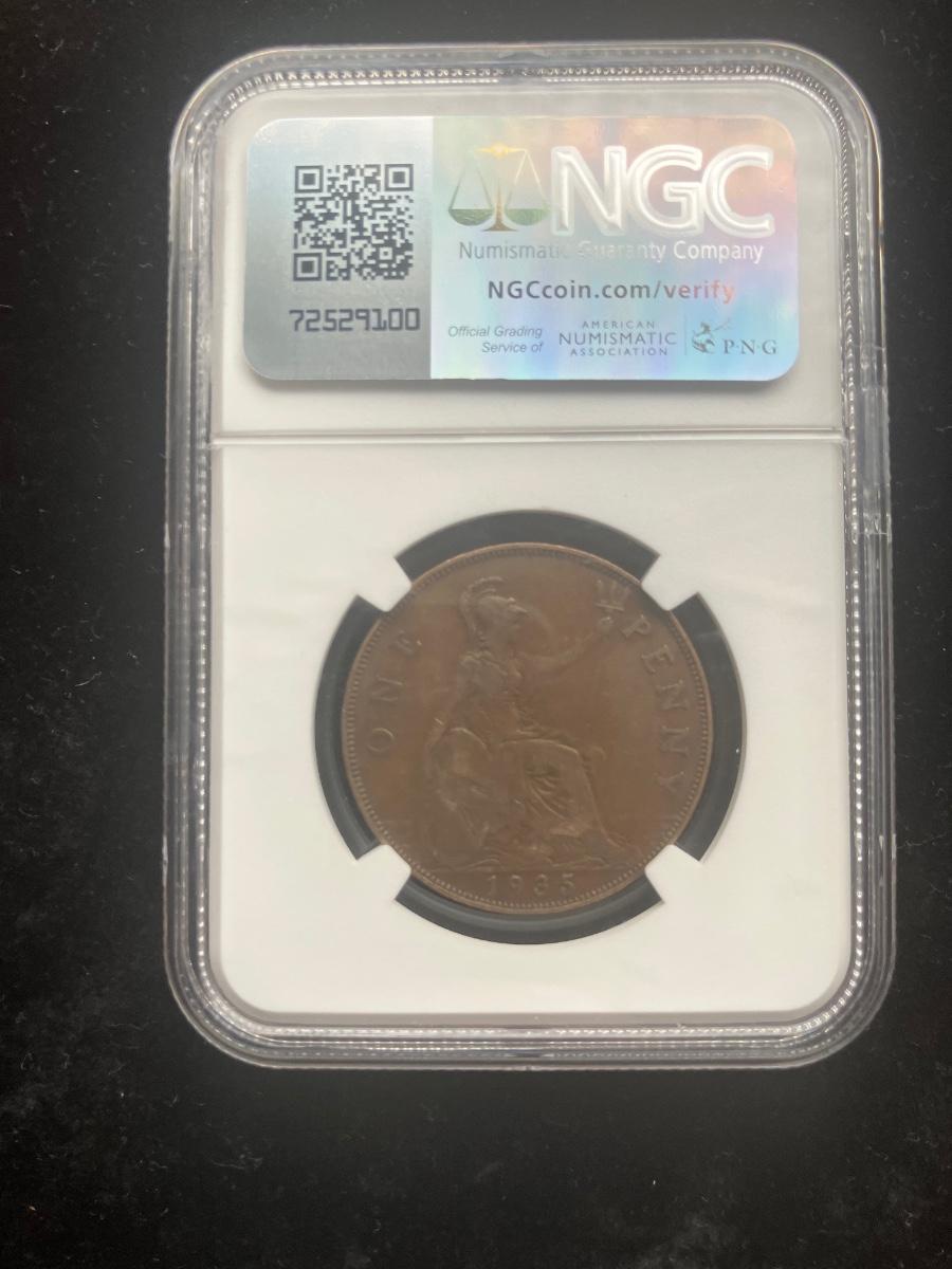 1935 Great Britain George V Penny - NGC Genuine - Attractive Bronze Toning