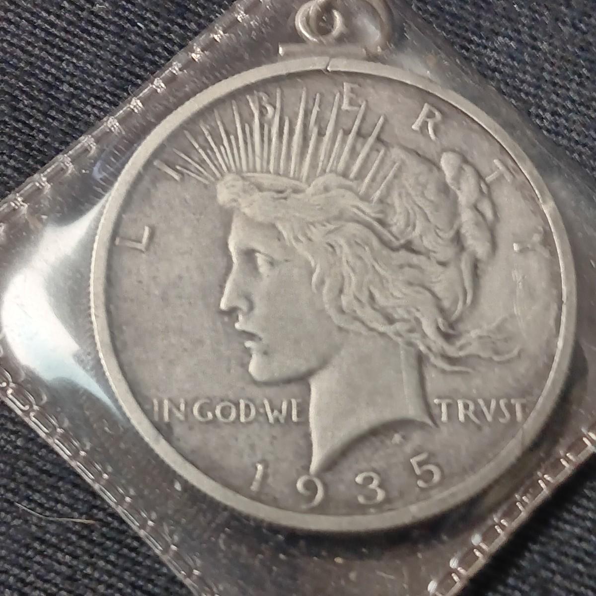 1935 PEACE SILVER DOLLAR WITH BAND TO USE AS PENDANT