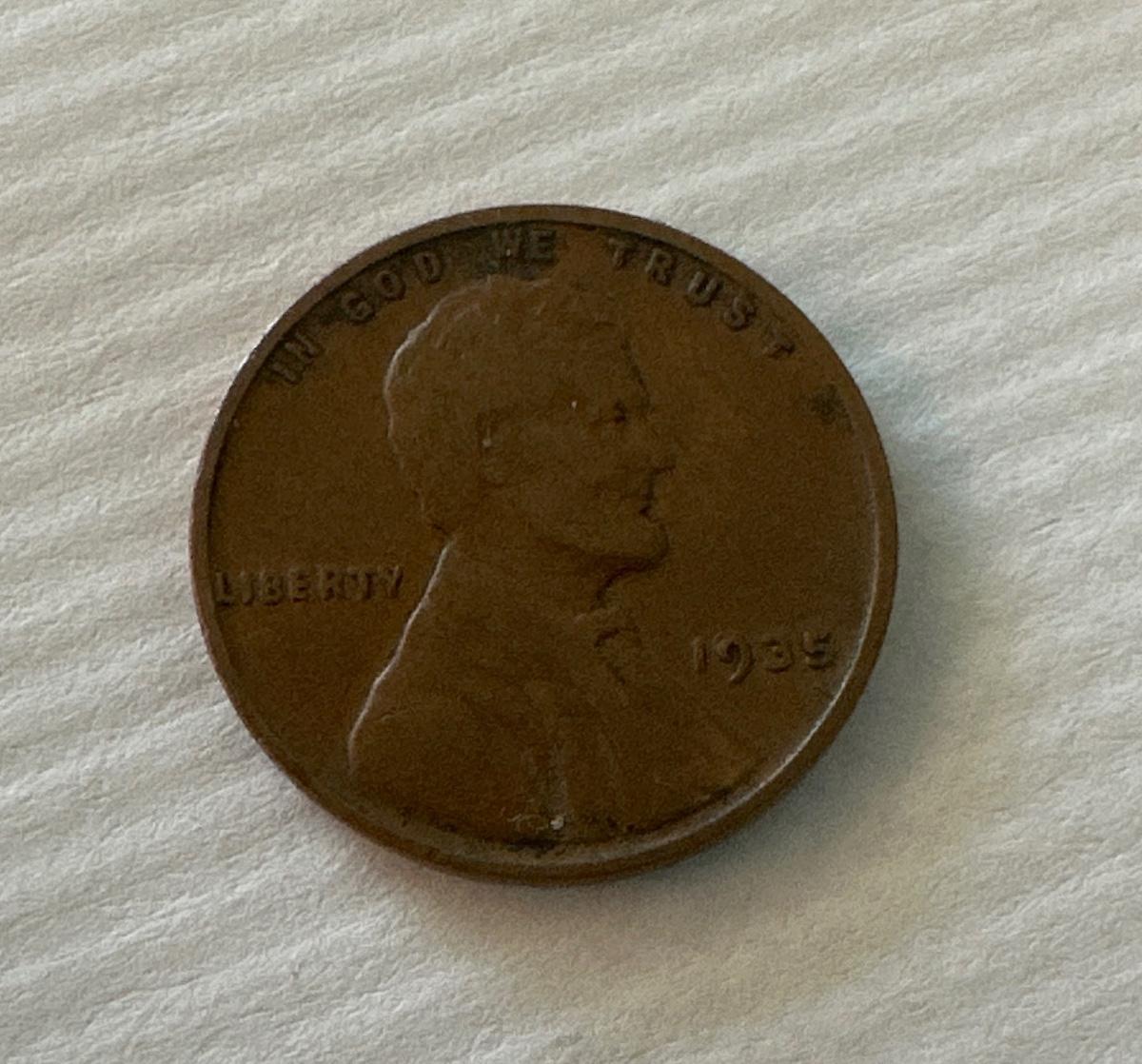 1935 circulated wheat penny with no mint mark