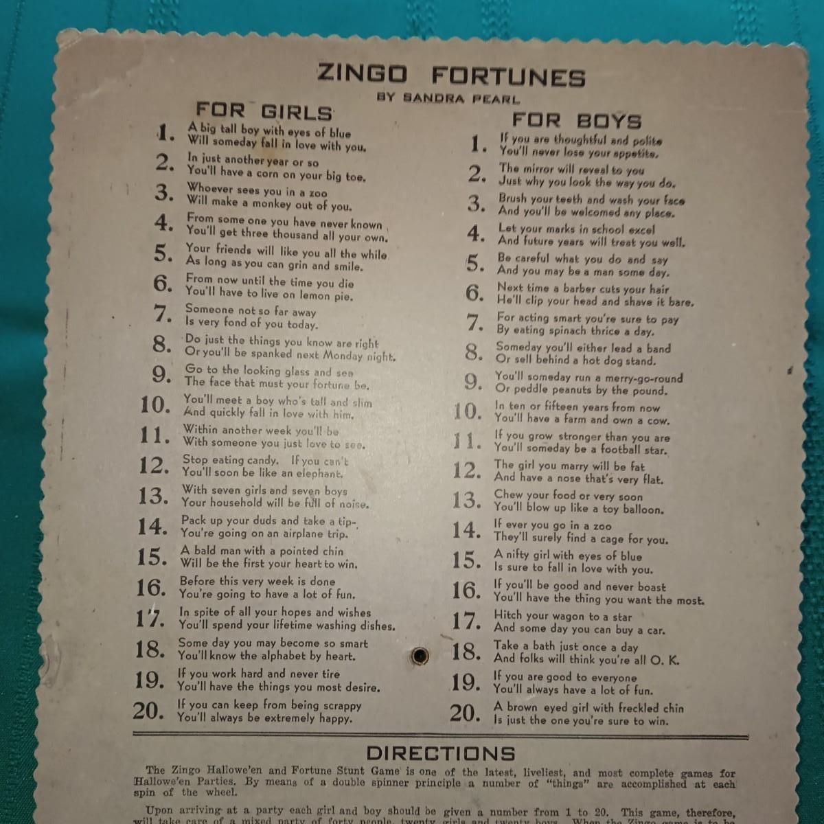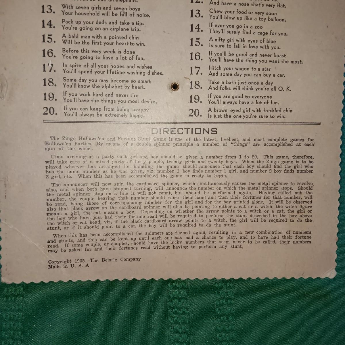 1935 ZINGO HALLOWEEN FORTUNE AND STUNT GAME