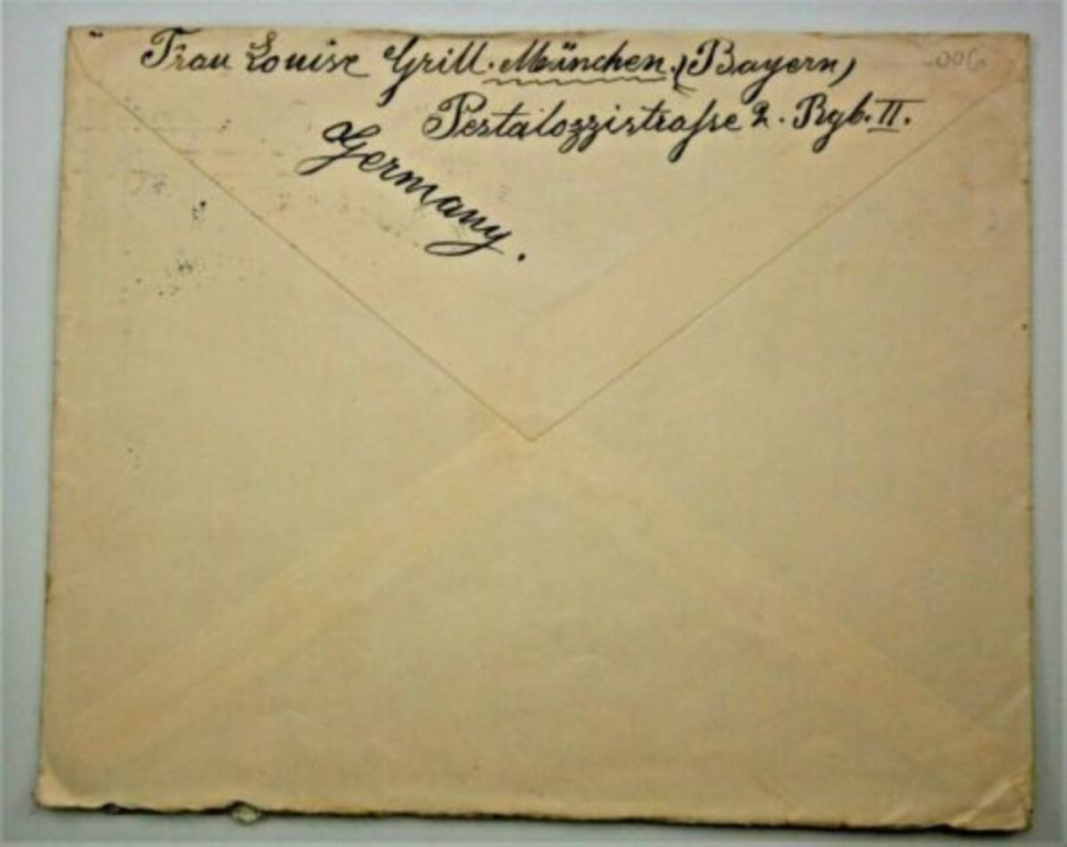 1936 German Cover - Munich to New Jersey, USA, 6 1/2 x 4 1/4 in., 5 & 20 Pfg. stamps, Munich postmark.