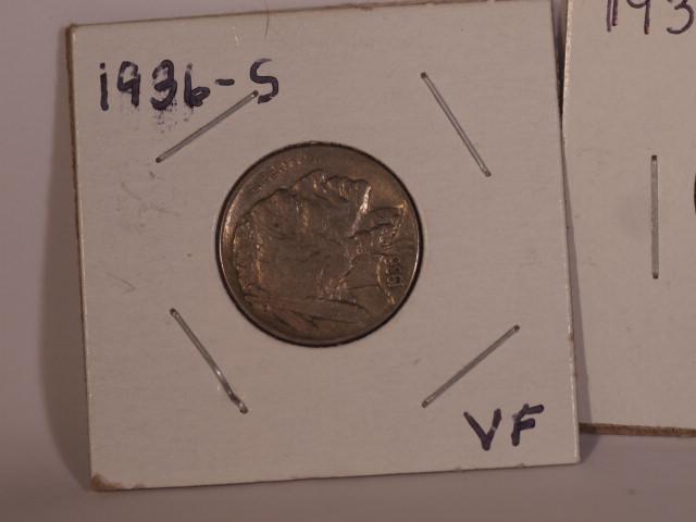 1936 S and 1937 P Buffalo Nickels Winning Bidder gets Both . They are in Very Good Condition as You can see and the dates are easy to read Still have some nice luster