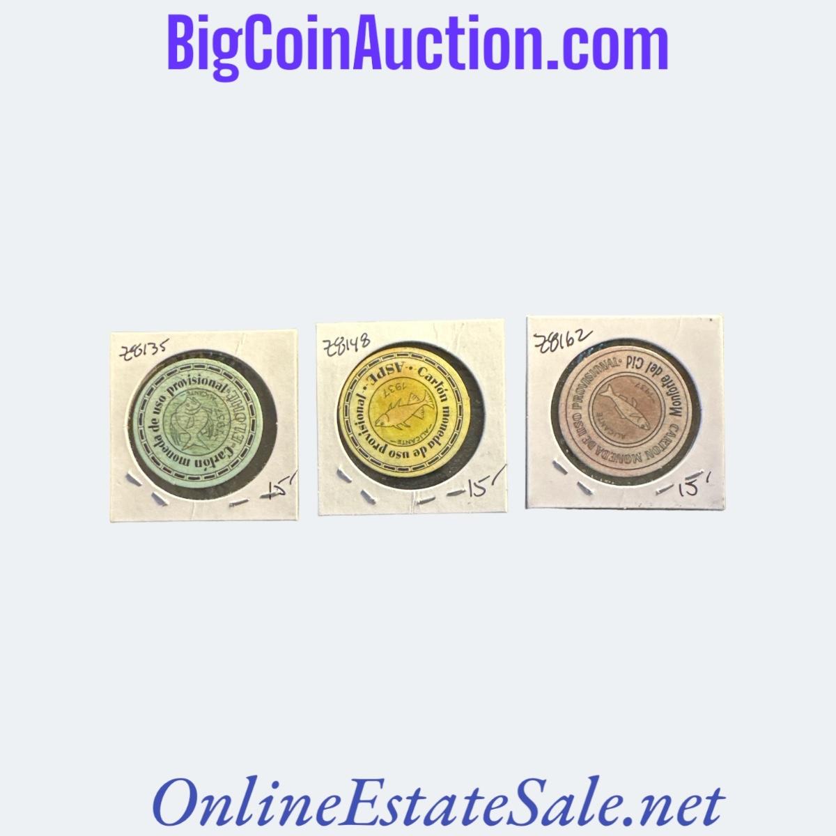 1937 ALICANTE SPAIN CIVIL WAR 30, 40, & 50 CENTIMOS STAMP MONEY
