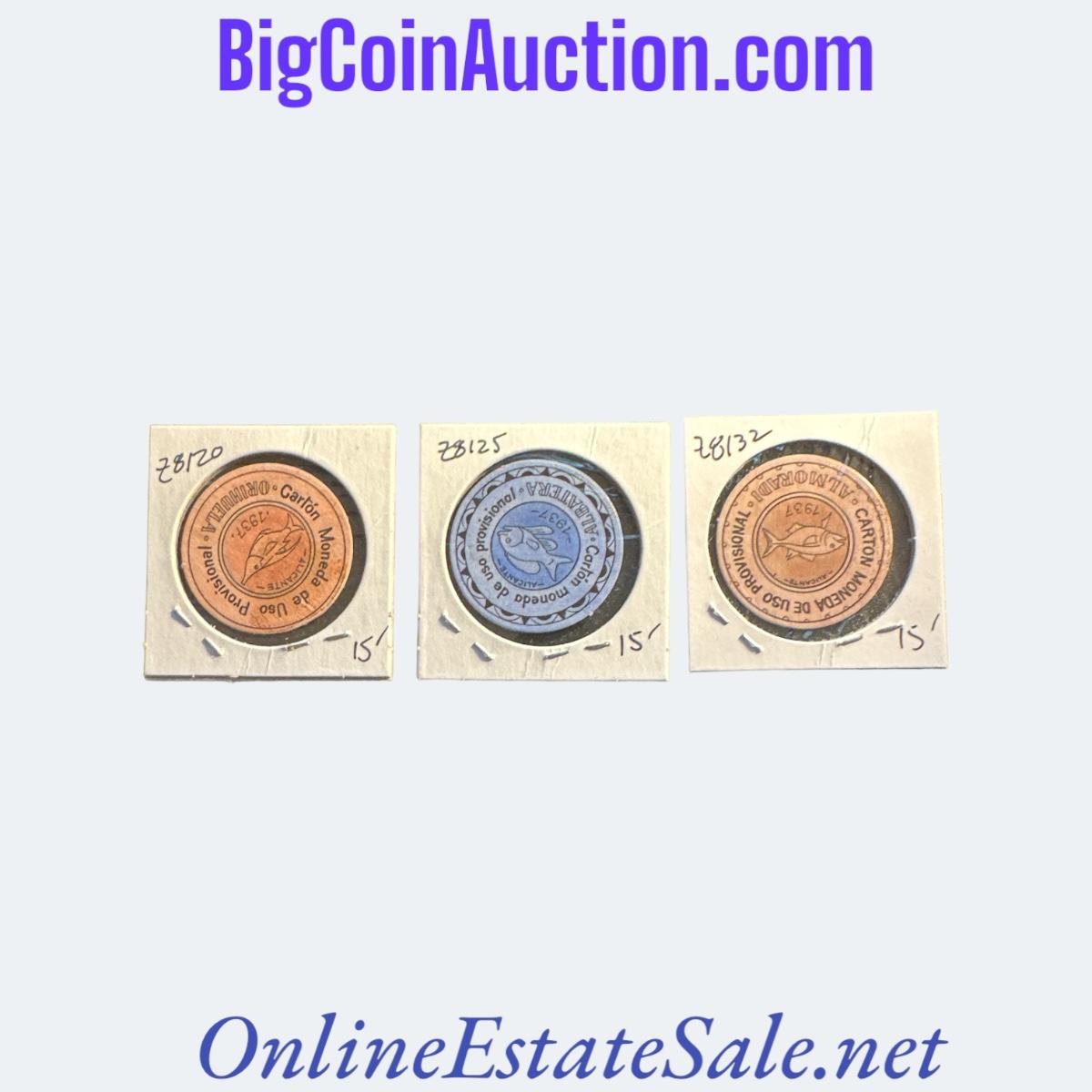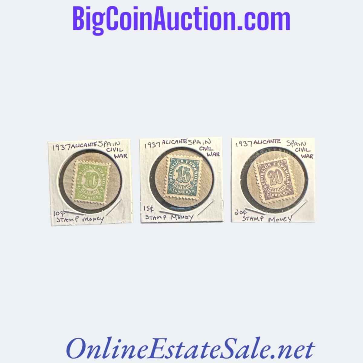 1937 ALICANTE SPAIN CIVIL WAR 10, 15, & 20 CENTIMOS STAMP MONEY