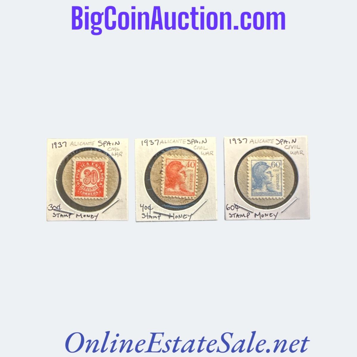 1937 ALICANTE SPAIN CIVIL WAR 30, 40, & 50 CENTIMOS STAMP MONEY
