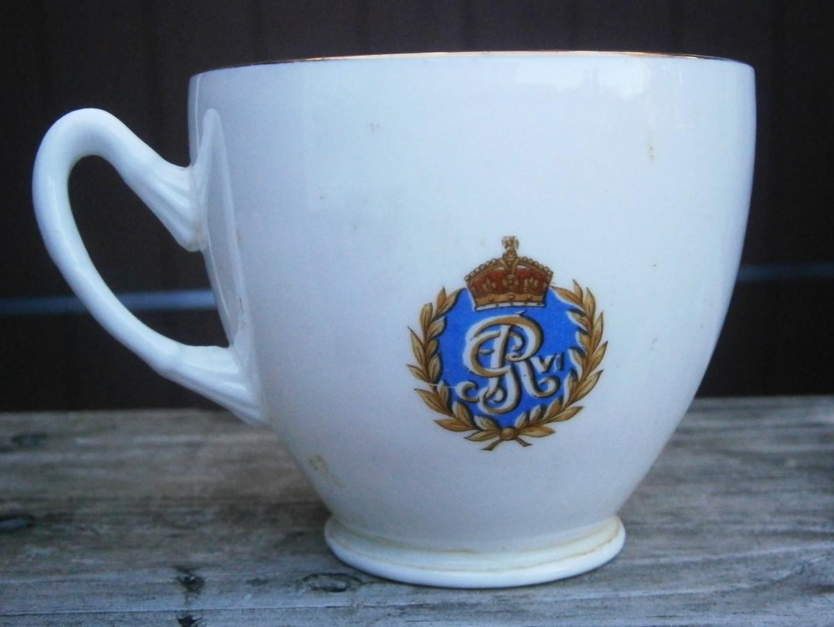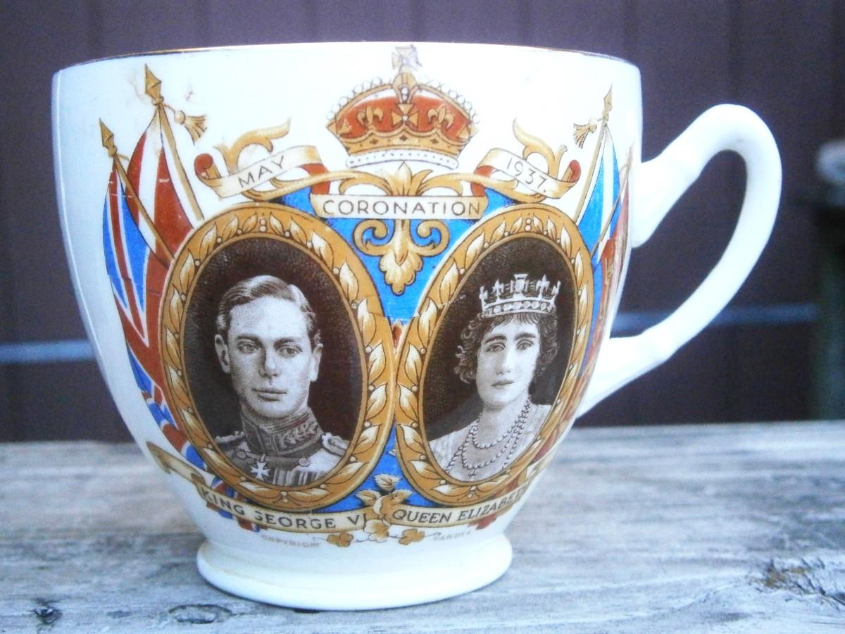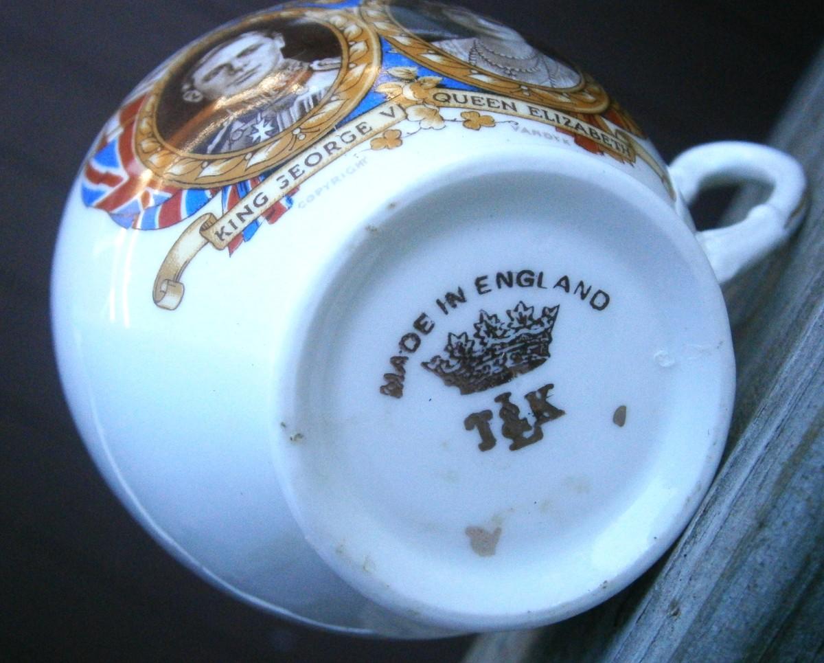 1937 Coronation of King George VI & Queen Elizabet Souvenir Cup made in England by TLKm 3 1/2 in. tall, porcelain with transfer.