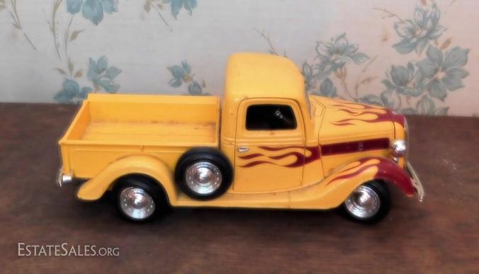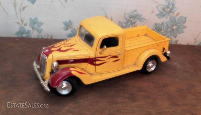 1937 Ford pick up scale model replica. Truck needs cleaning. All parts seem to be present and in working condition.