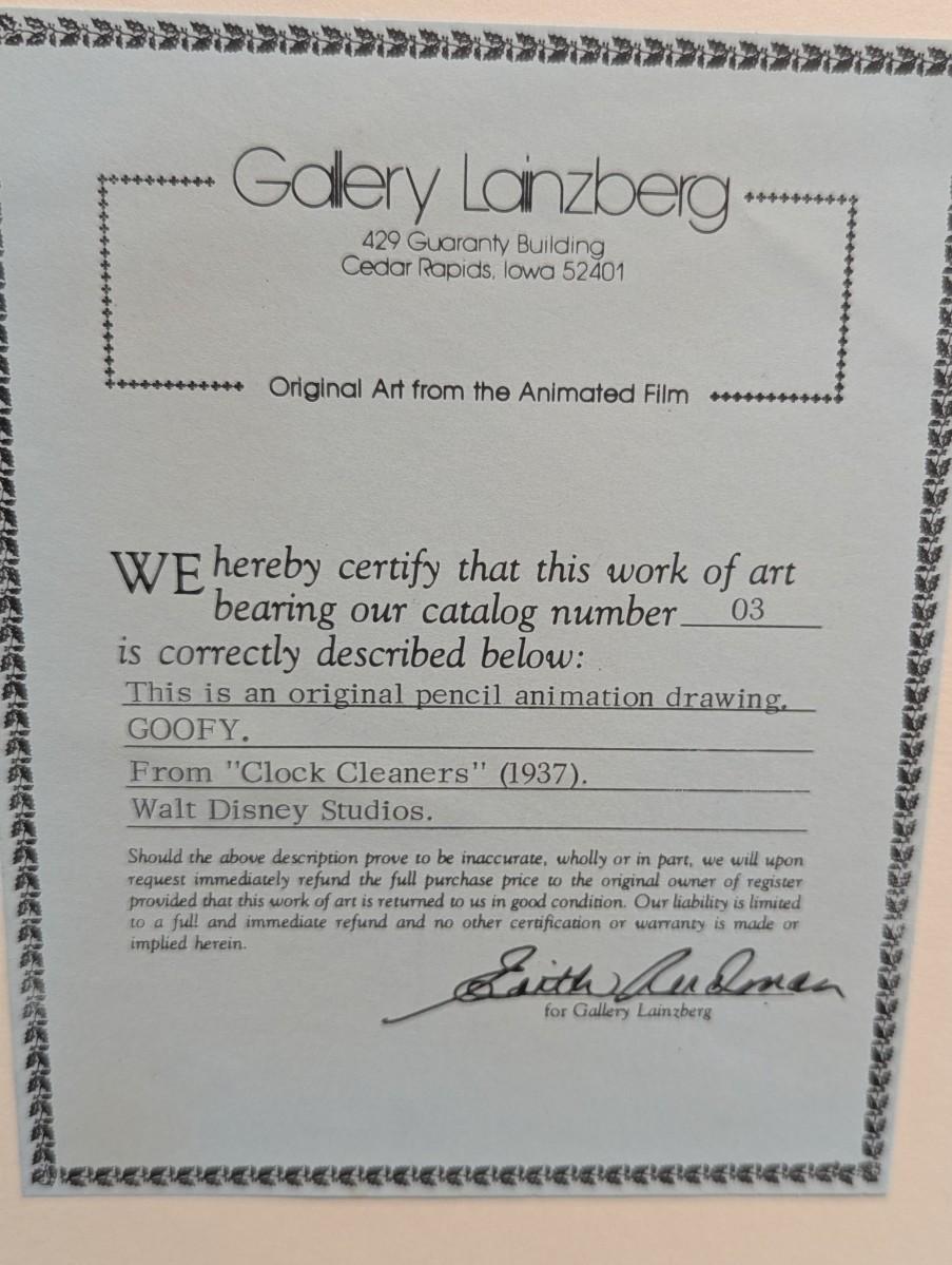 1937 Goofy Original Animation Drawing Walt Disney “Clock Cleaners” With COA