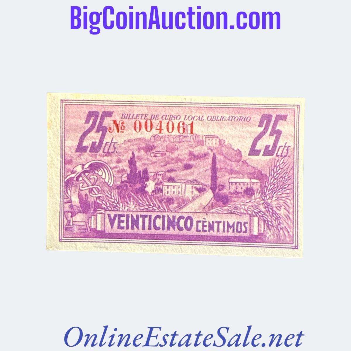 1937 SPAIN CIVIL WAR GESTORA DE AINSA 25 CENTIMOS