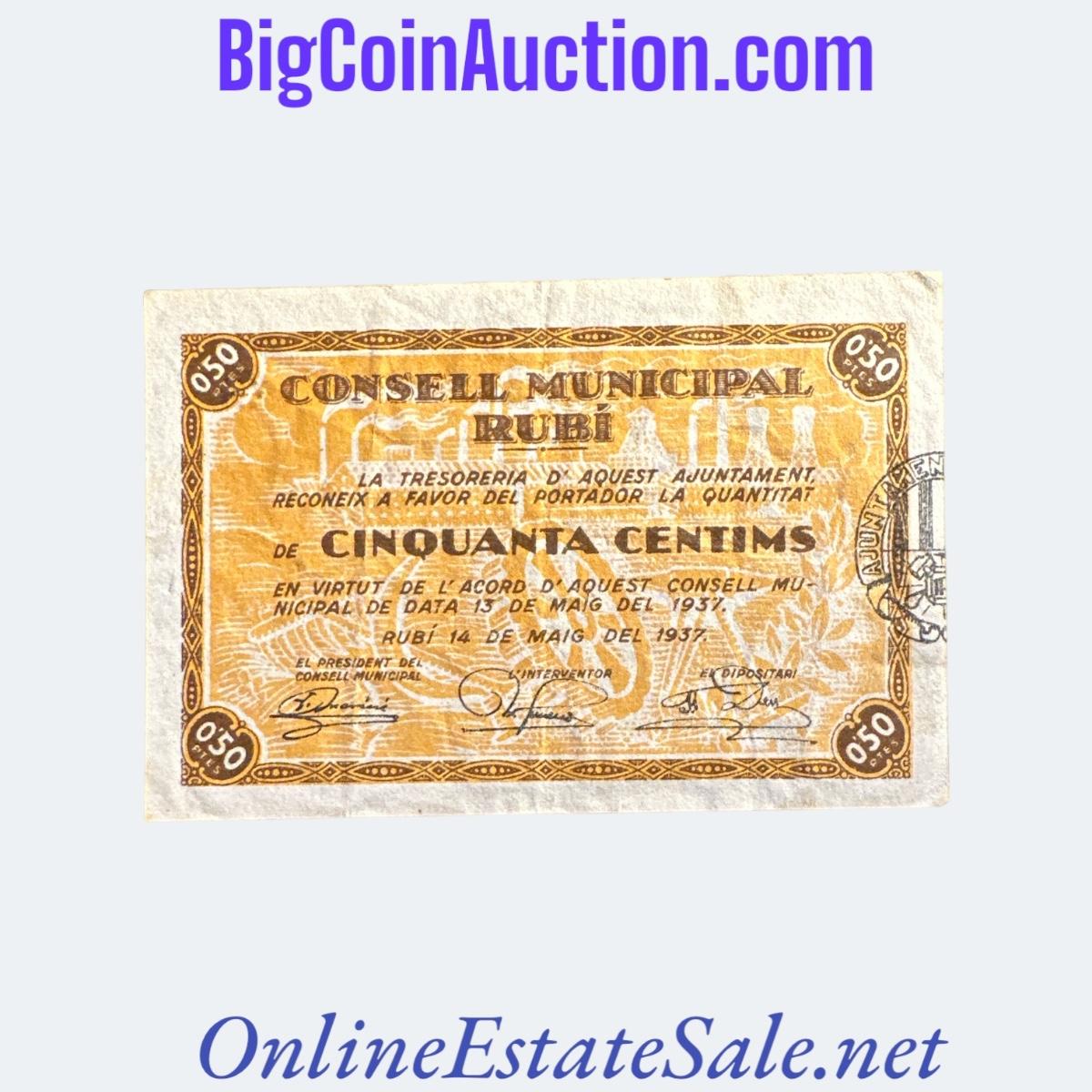 1937 SPAIN CIVIL WAR RUBI 50 CENTIMS