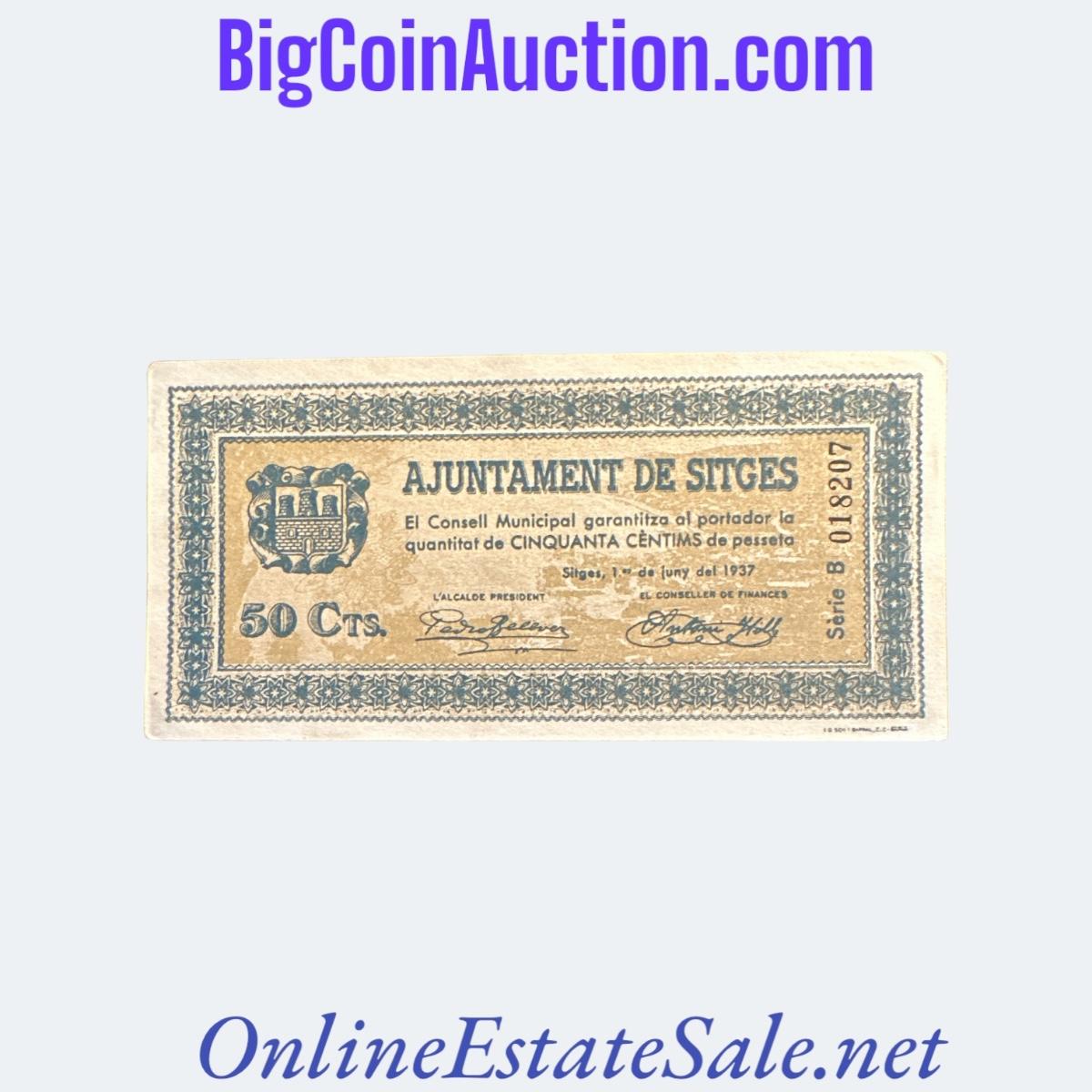 1937 SPAIN CIVIL WAR SITGES 50 CENTIMS