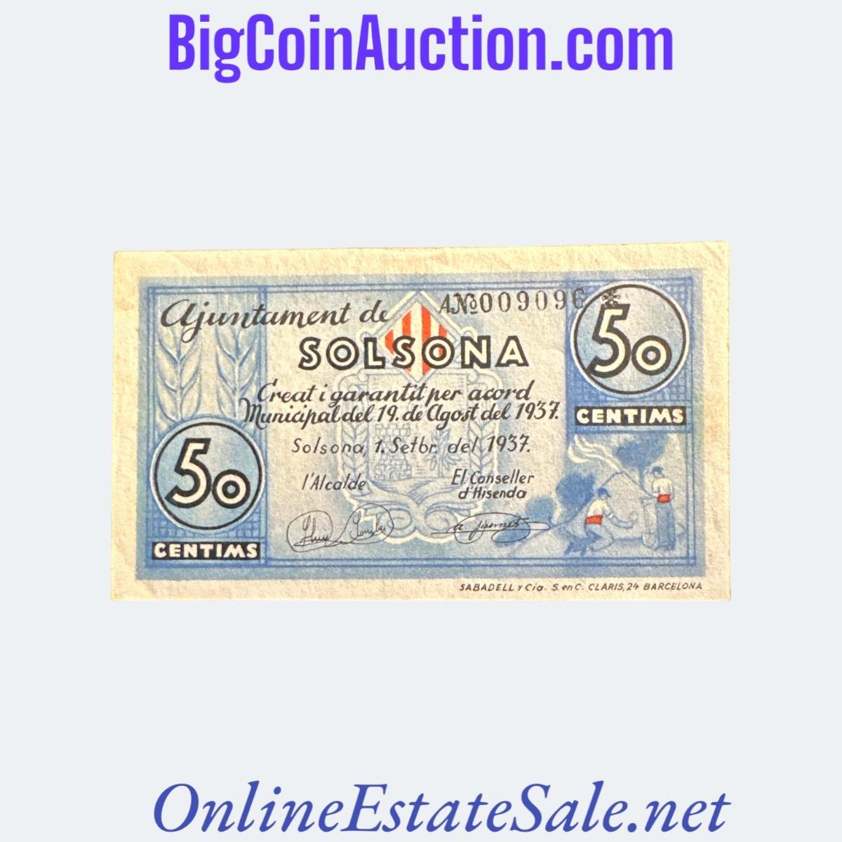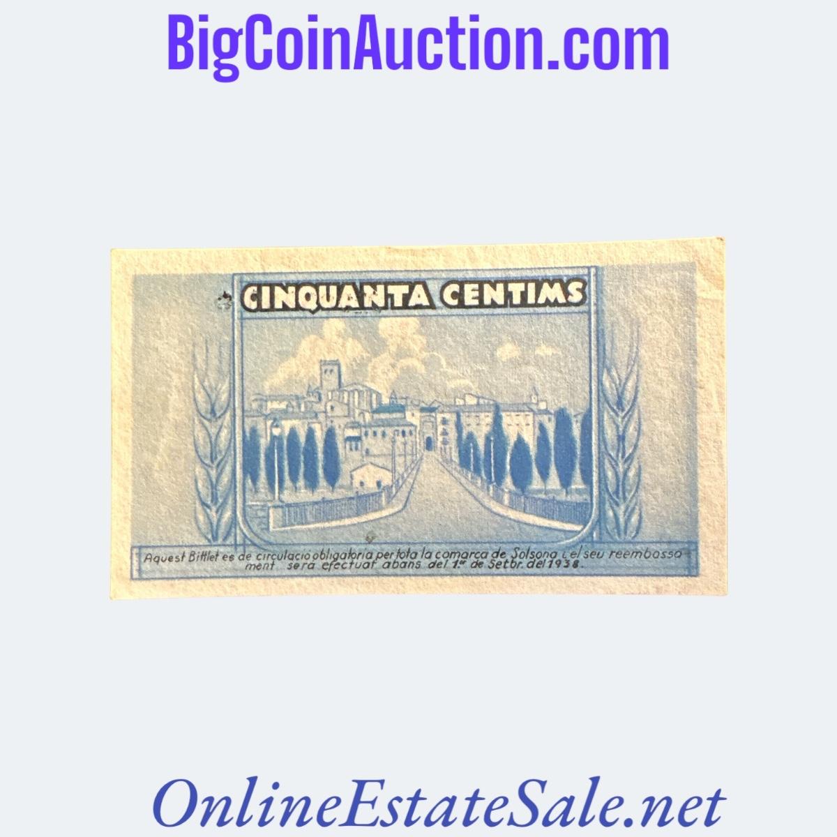 1937 SPAIN CIVIL WAR SOLSONA 50 CENTIMS