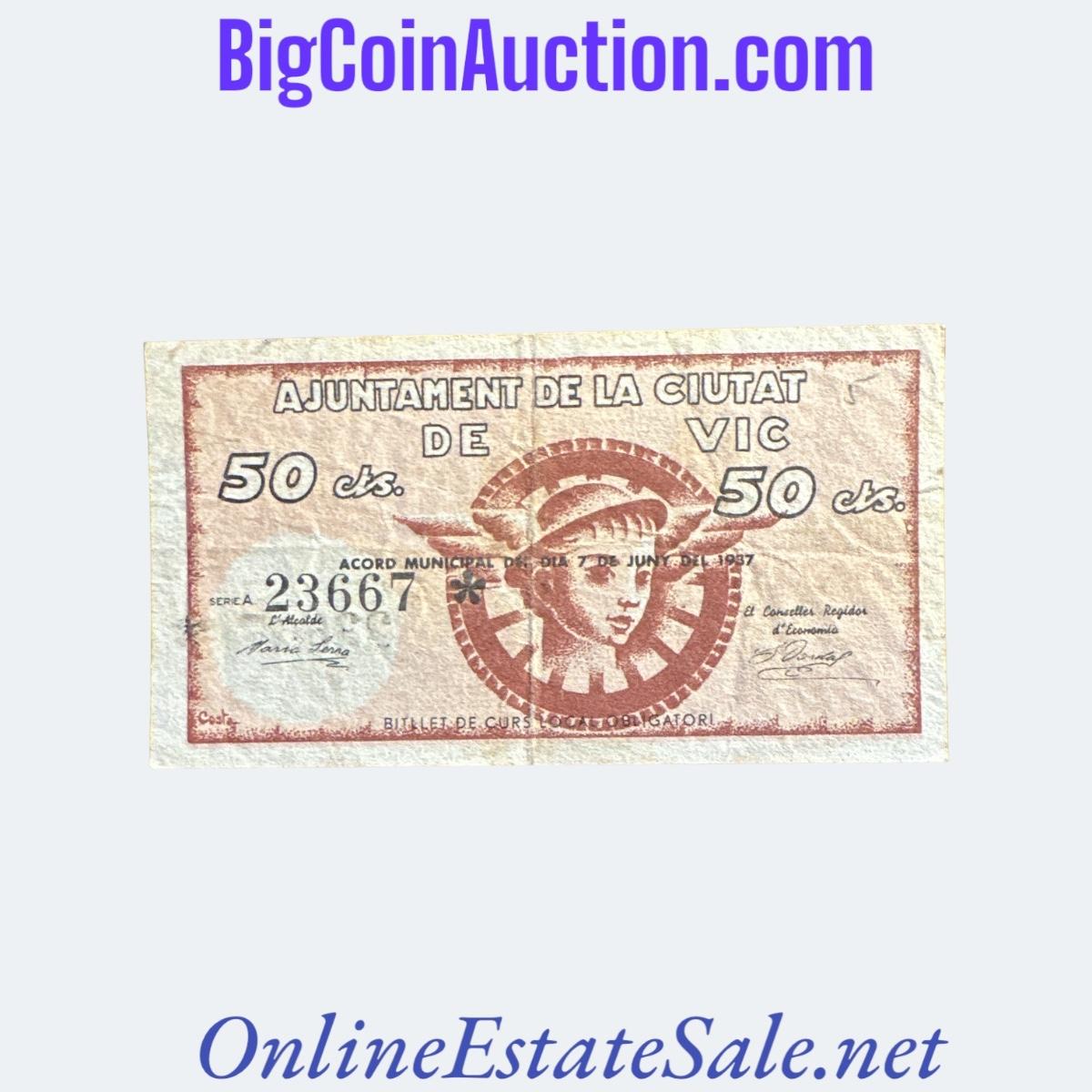 1937 SPAIN CIVIL WAR VIC 50 CENTIMS