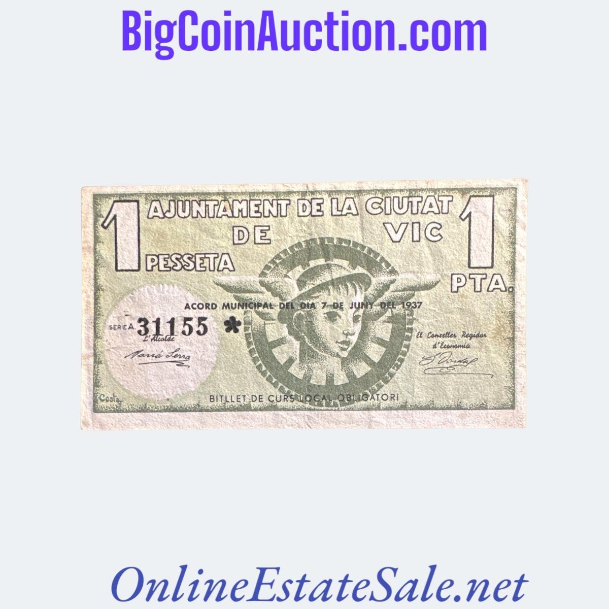1937 SPAIN CIVIL WAR VIC 1 PESSETA