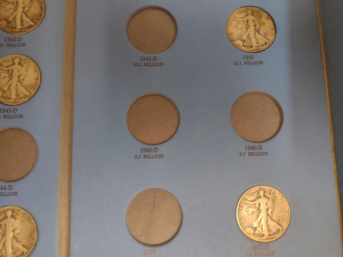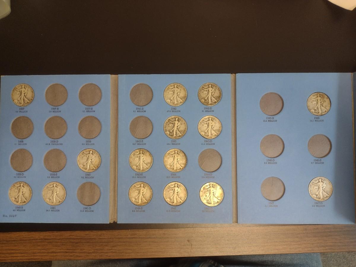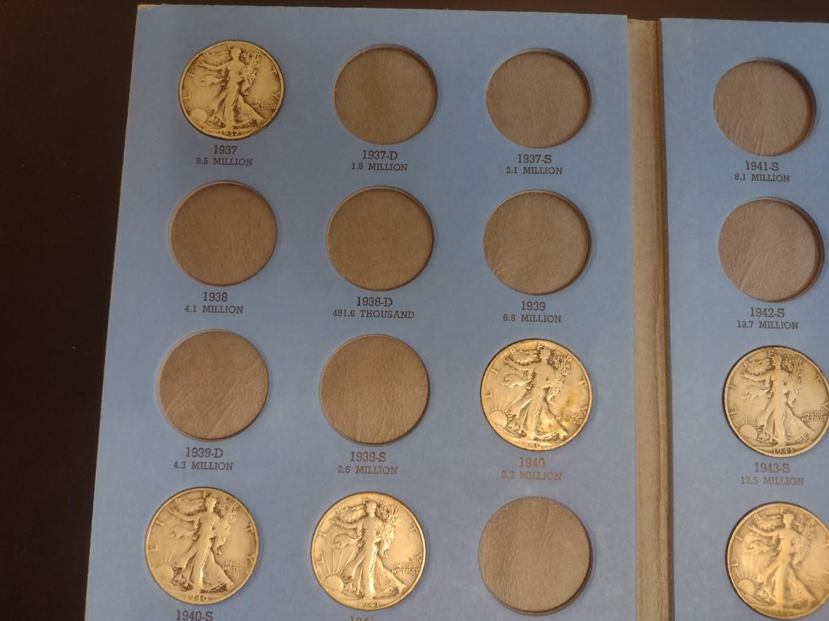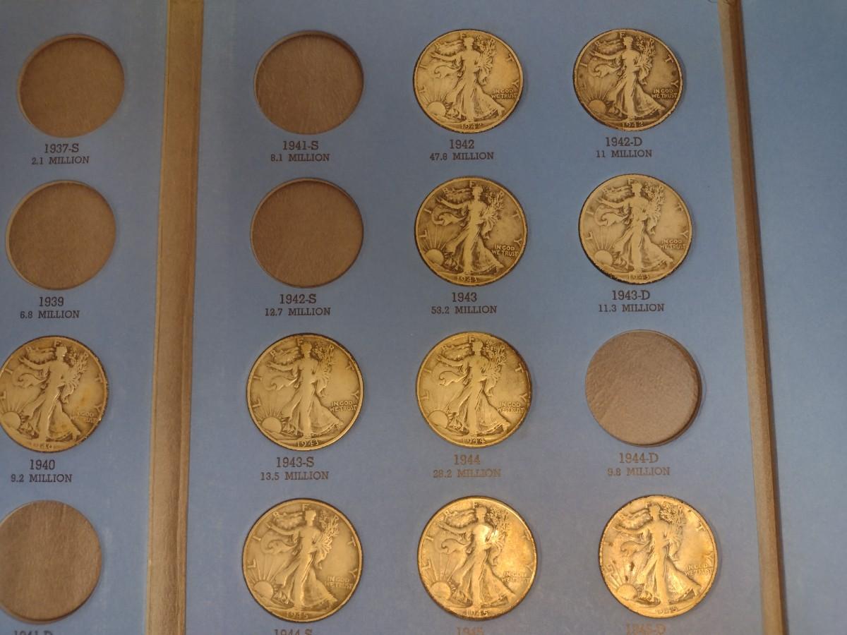 1937 to 1947 Liberty Standing Half Dollar Silver Coin Collection as Shown (#65). Incomplete set as shown