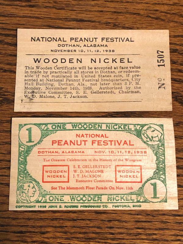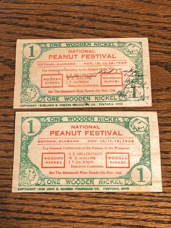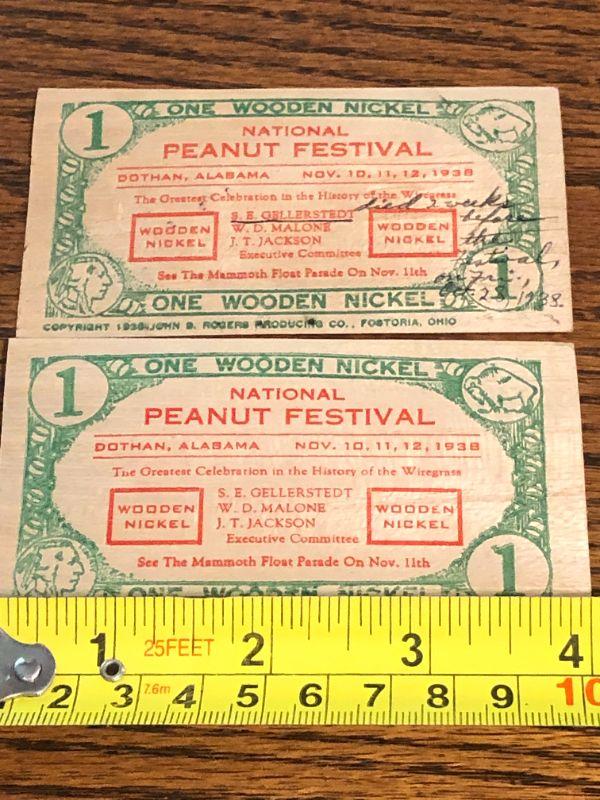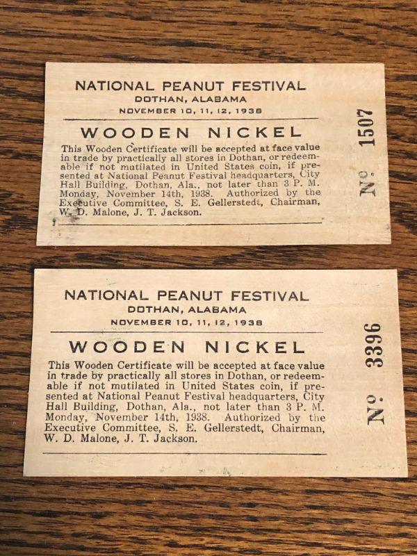 1938 National Peanut Festival Wooden Nickel Fair Passes